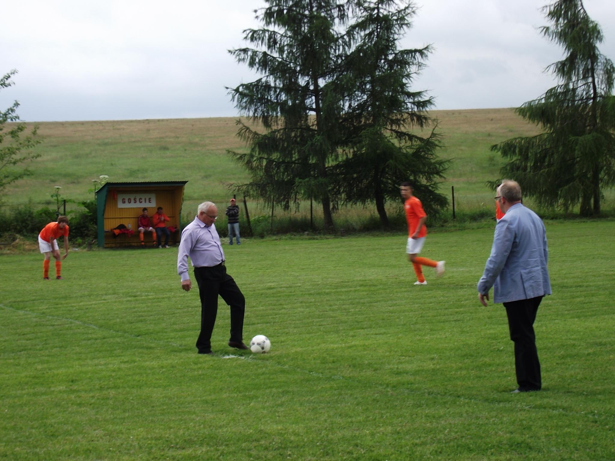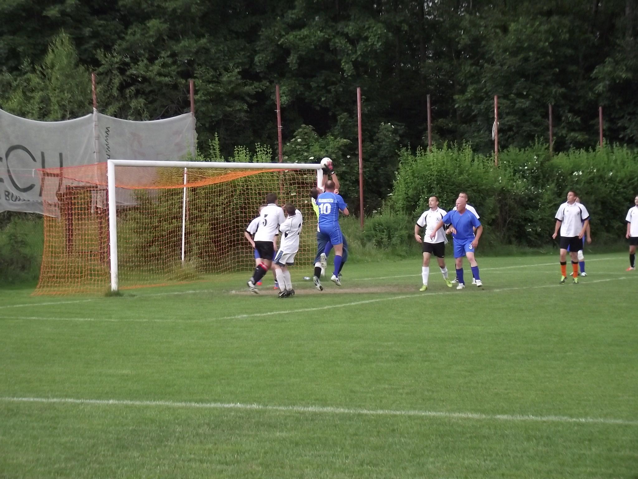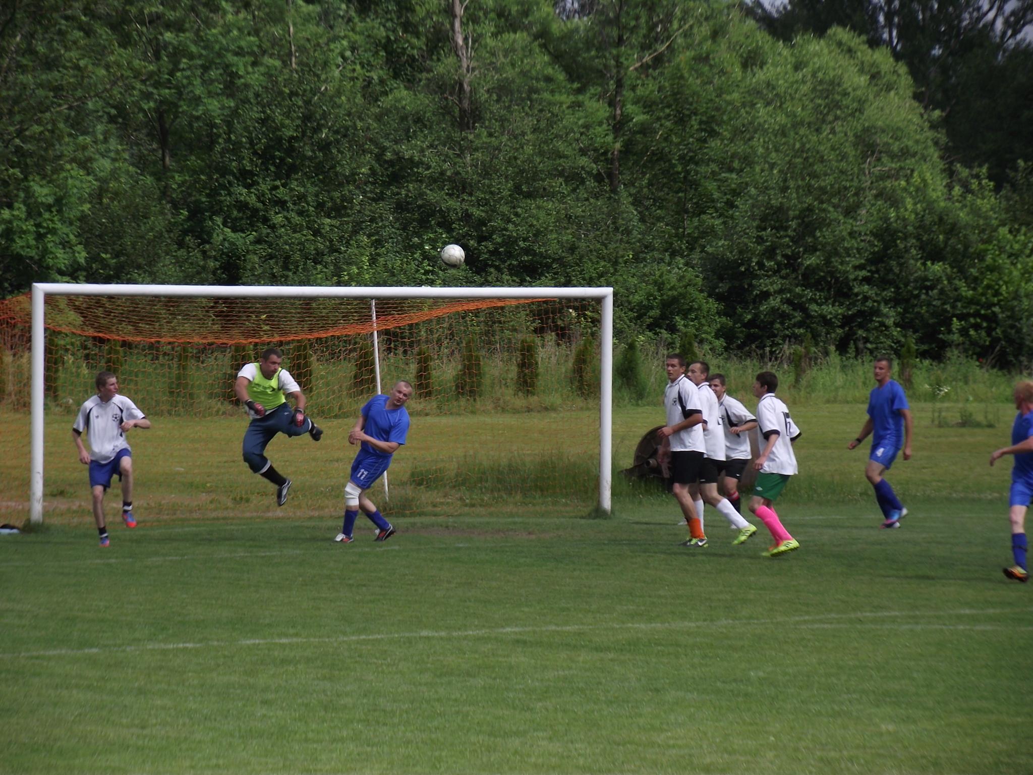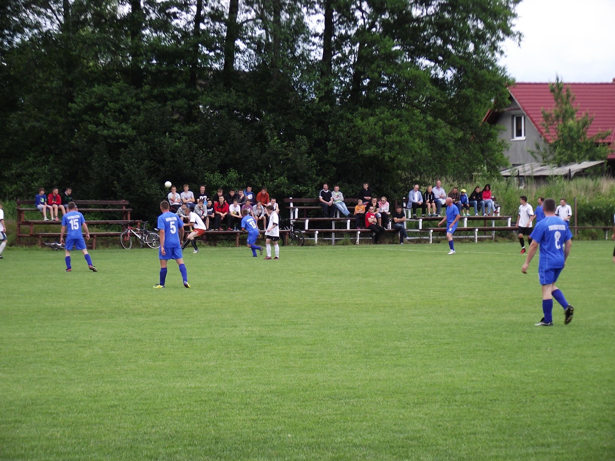 Los zdecydował, że w pierwszym meczu zagrały drużyny z Siennej i Twardorzeczki. Mecz został rozegrany 14.06.2014 r. na boisku sportowym w Leśnej i zakończył się zwycięstwem drużyny z Siennej, stosunkiem bramek 3:2. Pomimo przejścia ulewy piłkarze ani na moment nie zwalniali tempa gry, a ciekawostką może być fakt, że w ostatnich 20 minutach na boisku w drużynie Twardorzeczki pojawił się … wójt. Można też powiedzieć, że w rozgrywkach także rada gminy miała swojego przedstawiciela w osobie jej wiceprzewodniczącego Janusza Szymańskiego, który zagrał we wszystkich meczach w składzie drużyny z Siennej.