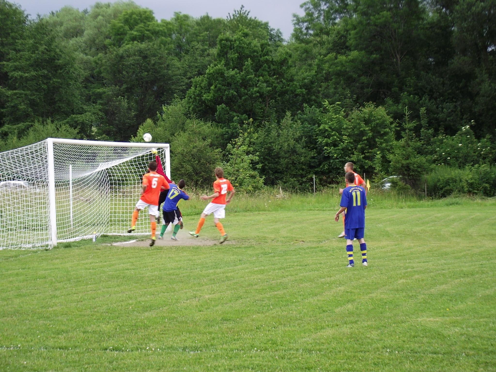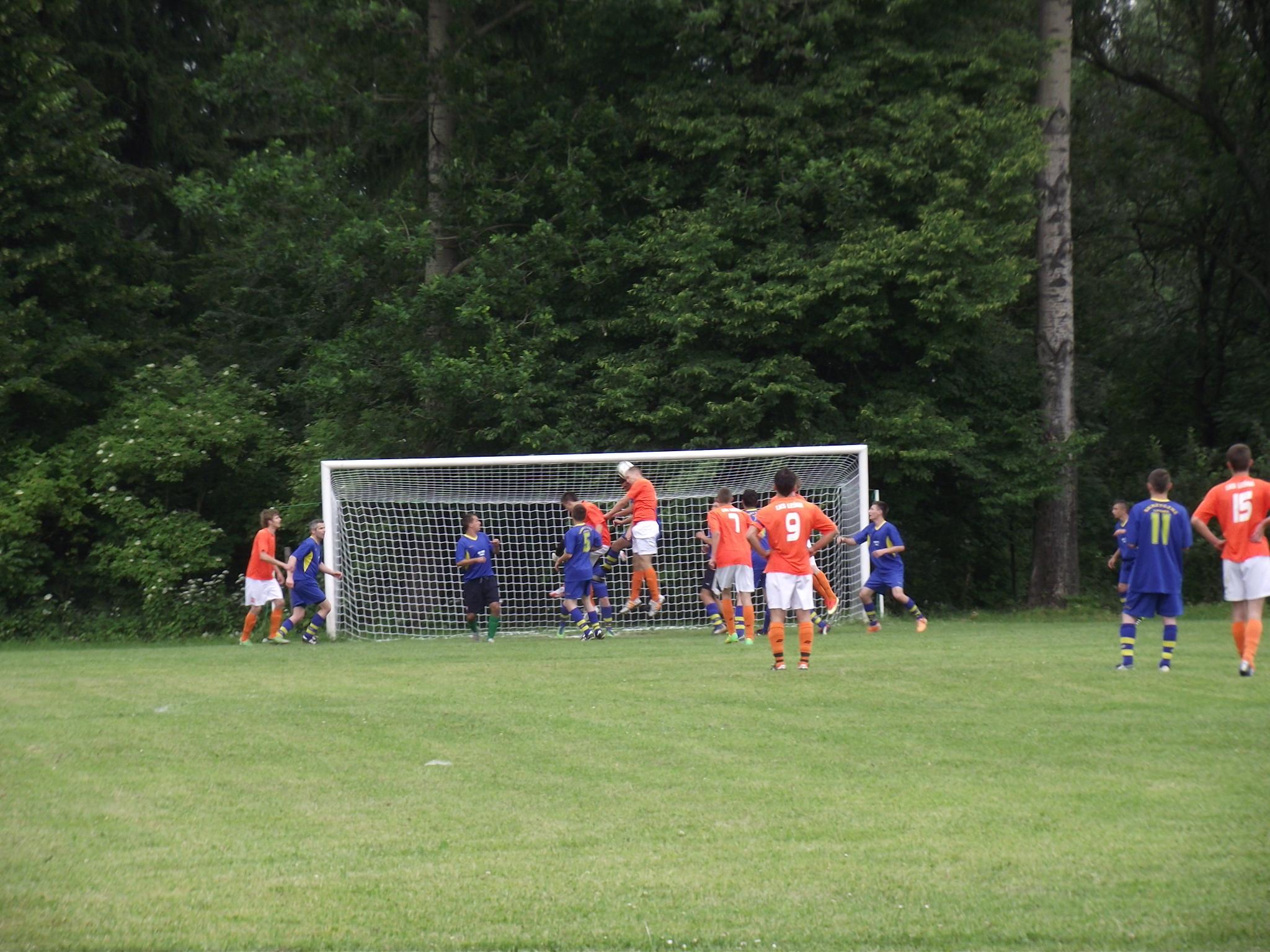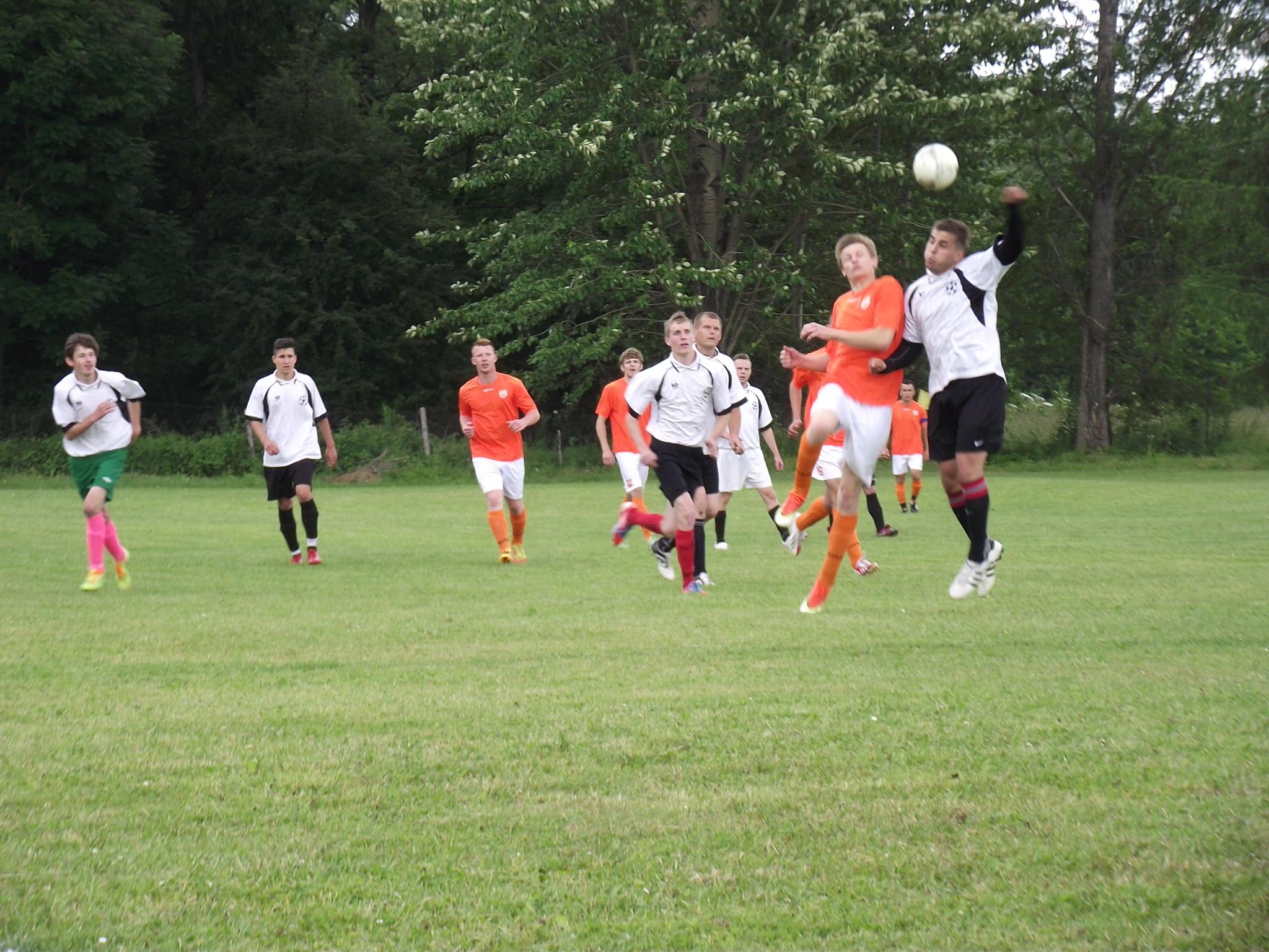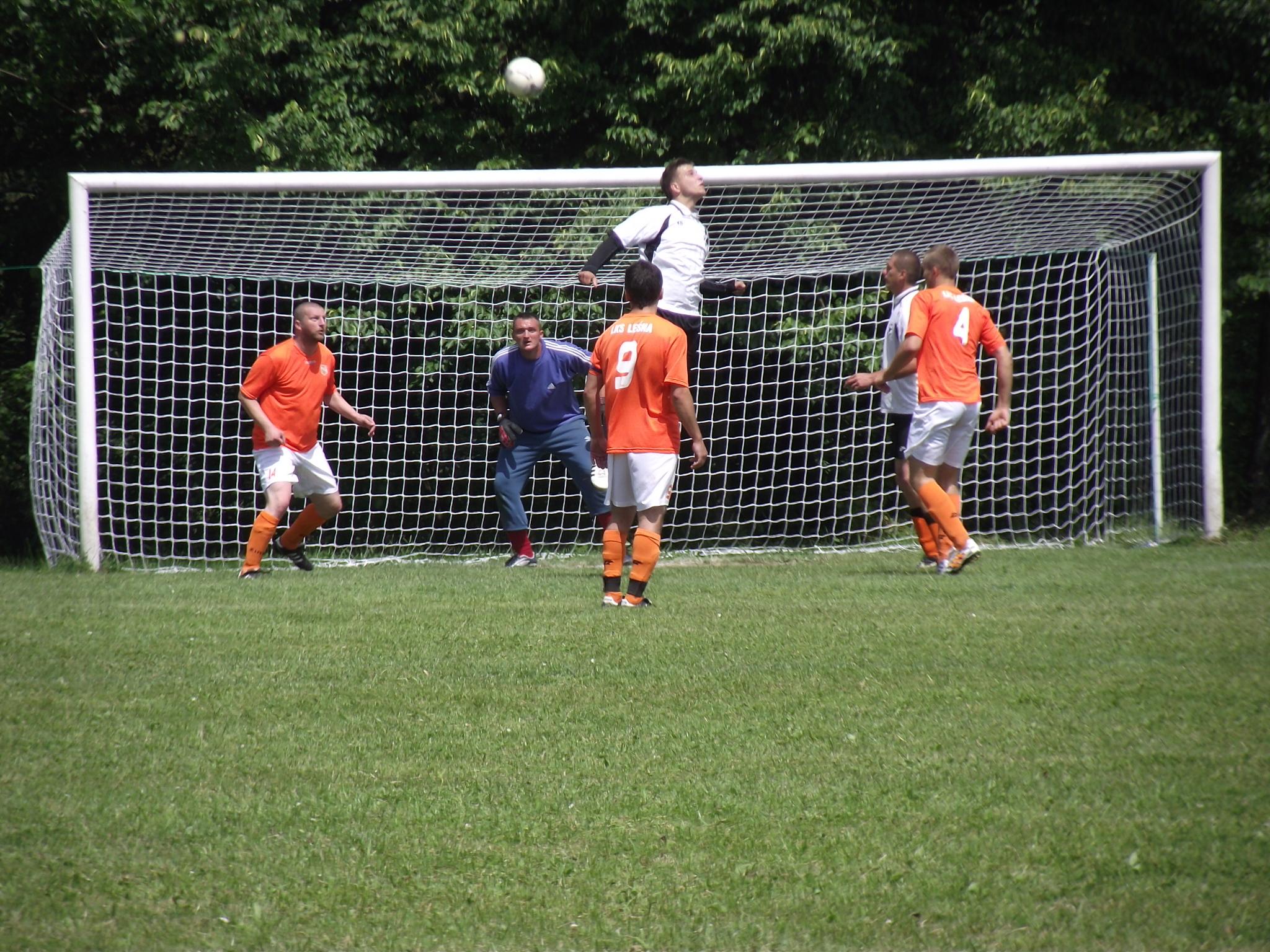 Los zdecydował, że w pierwszym meczu zagrały drużyny z Siennej i Twardorzeczki. Mecz został rozegrany 14.06.2014 r. na boisku sportowym w Leśnej i zakończył się zwycięstwem drużyny z Siennej, stosunkiem bramek 3:2. Pomimo przejścia ulewy piłkarze ani na moment nie zwalniali tempa gry, a ciekawostką może być fakt, że w ostatnich 20 minutach na boisku w drużynie Twardorzeczki pojawił się … wójt. Można też powiedzieć, że w rozgrywkach także rada gminy miała swojego przedstawiciela w osobie jej wiceprzewodniczącego Janusza Szymańskiego, który zagrał we wszystkich meczach w składzie drużyny z Siennej.