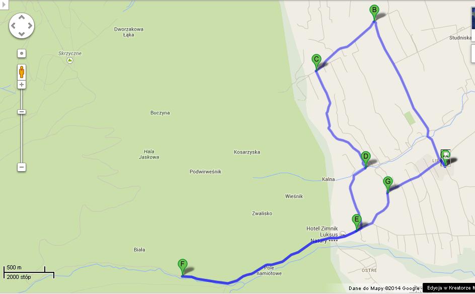 Uczestnicy wyruszą z Centrum w Lipowej drogą powiatową w kierunku Lipowej Podlas. Następnie obok sklepu spożywczego Pani Elżbiety Wisły rowerzyści dotrą na Bindową Kępę, z której udadzą się do Doliny Zimnika. Po dotarciu do „Lipek” uczestnicy udadzą się w drogę powrotną i przejeżdżając obok Hotelu Zimnik, drogą gminną nad strażnicą dotrą na Plac w Centrum Lipowej.
