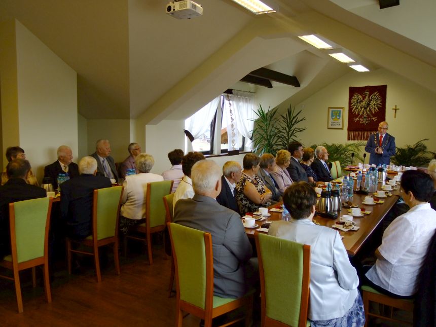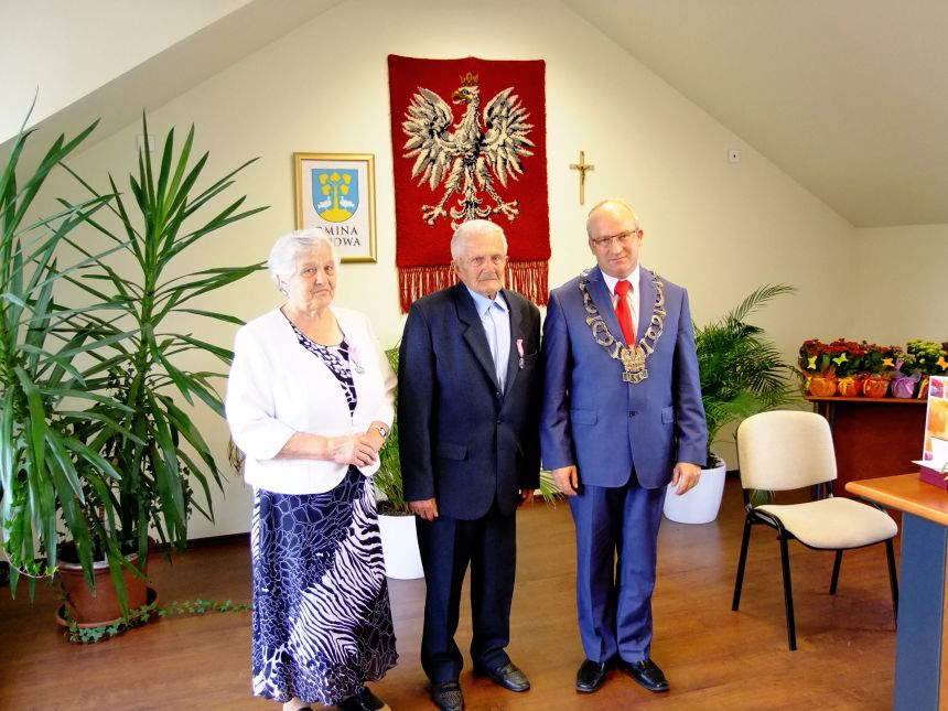 Wręczając medale Dostojnym Jubilatom, Wójt pogratulował Im pięknej rocznicy ślubu. „Nie ukrywam, że jestem wzruszony, patrząc na Was i widząc łzy w oczach u niektórych z Was. Chcę Wam bardzo serdecznie pogratulować dotrzymanego słowa i wytrwania w związku małżeńskim tak długich lat. Gratuluję Wam także dobrego wychowania dzieci oraz tego, że tworzycie wspaniałe rodziny. Z satysfakcją mogę powiedzieć, że mieszkańcy naszej gminy są dobrymi ludźmi, którzy zasługują na szacunek. Chcę Wam życzyć dużo zdrowia, radości, aby otaczała Was atmosfera życzliwości, troski, a także należnego szacunku.” - powiedział gospodarz gminy.