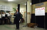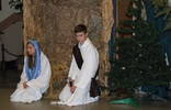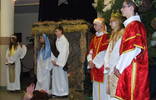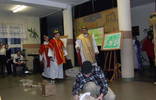 Tegoroczne spotkanie kolędowe w formie jak co roku Jasełek przygotował ks. katecheta Tomasz Walczak z grupą oazową zrzeszoną przy kościele parafialnym w Lipowej, której szeregi zasilają nasi uczniowie oraz absolwenci gimnazjum. O oprawę muzyczną zadbała pani Alina Koman z grupą chóru oraz zespołem instrumentalnym naszej szkoły "Galaxy". Były więc Jasełka, w których treściach przewijała się tradycja i przesłanie płynące z narodzenia bożej dzieciny z wątkami politycznymi i społecznymi dotyczącymi sytuacji w kraju. Całość jak co roku uświetnił koncert kolęd i pastorałek wykonanych przez chór i solistów przy akompaniamencie "Galaxy". Nie zabrakło też tradycyjnych góralskich akcentów, oprócz kolęd dawniej śpiewanych były i życzenia staropolskie, co wprowadziło kolędujących w nastrój na nowo świąteczny. Część artystyczną zakończyło wspólne śpiewanie kolęd. Po życzeniach pana Wójta życzenia złożyła przedstawicielka grona nauczycieli emerytowanych naszej gminy pani Małgorzata Ciurla.