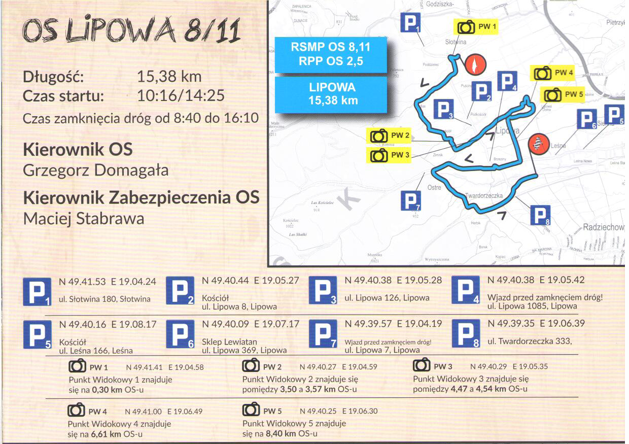 jezdnie w Gminie Lipowa, na których wyznaczona została trasa rajdu, zostaną całkowicie wyłączone z ruchu drogowego.