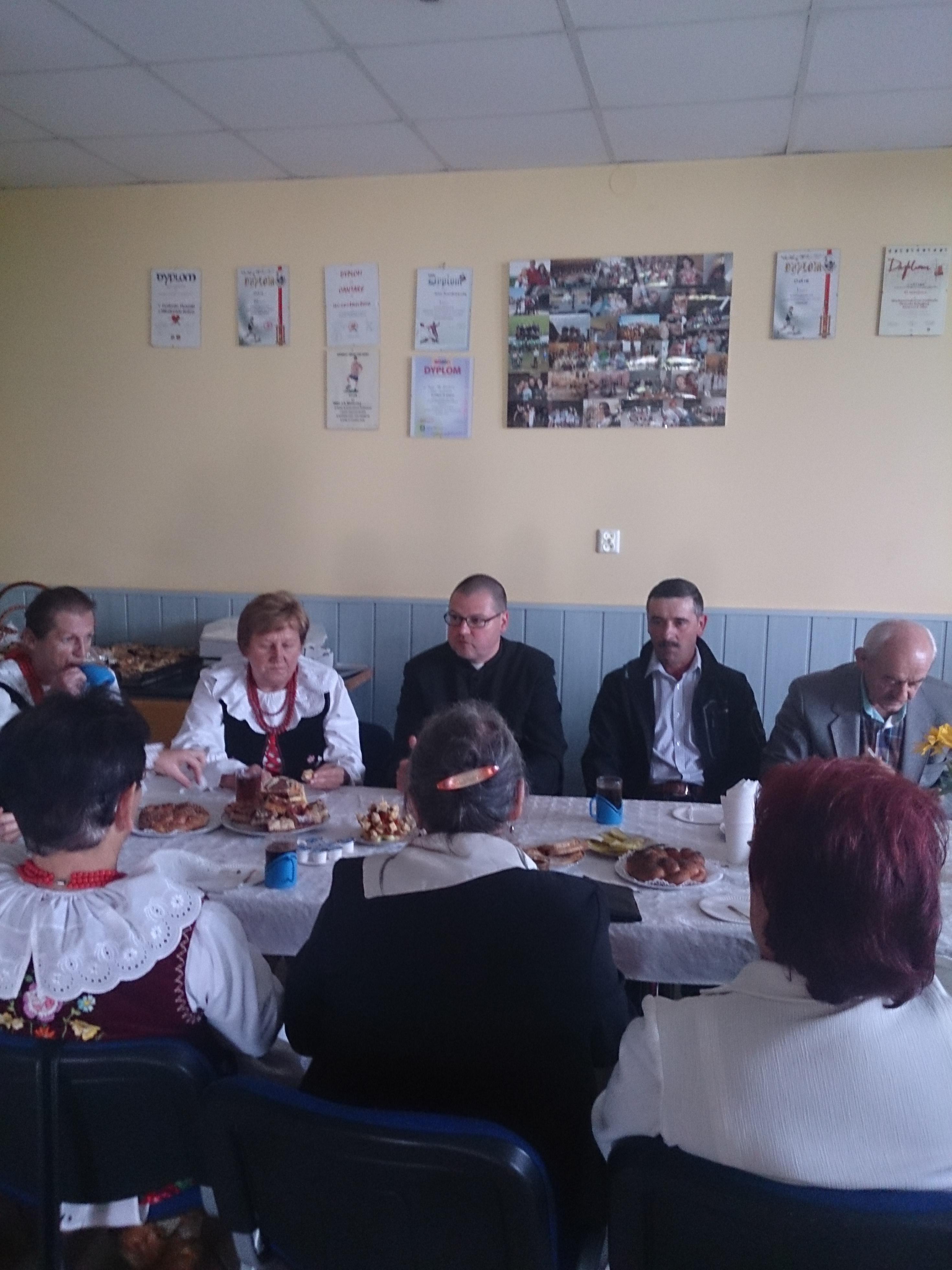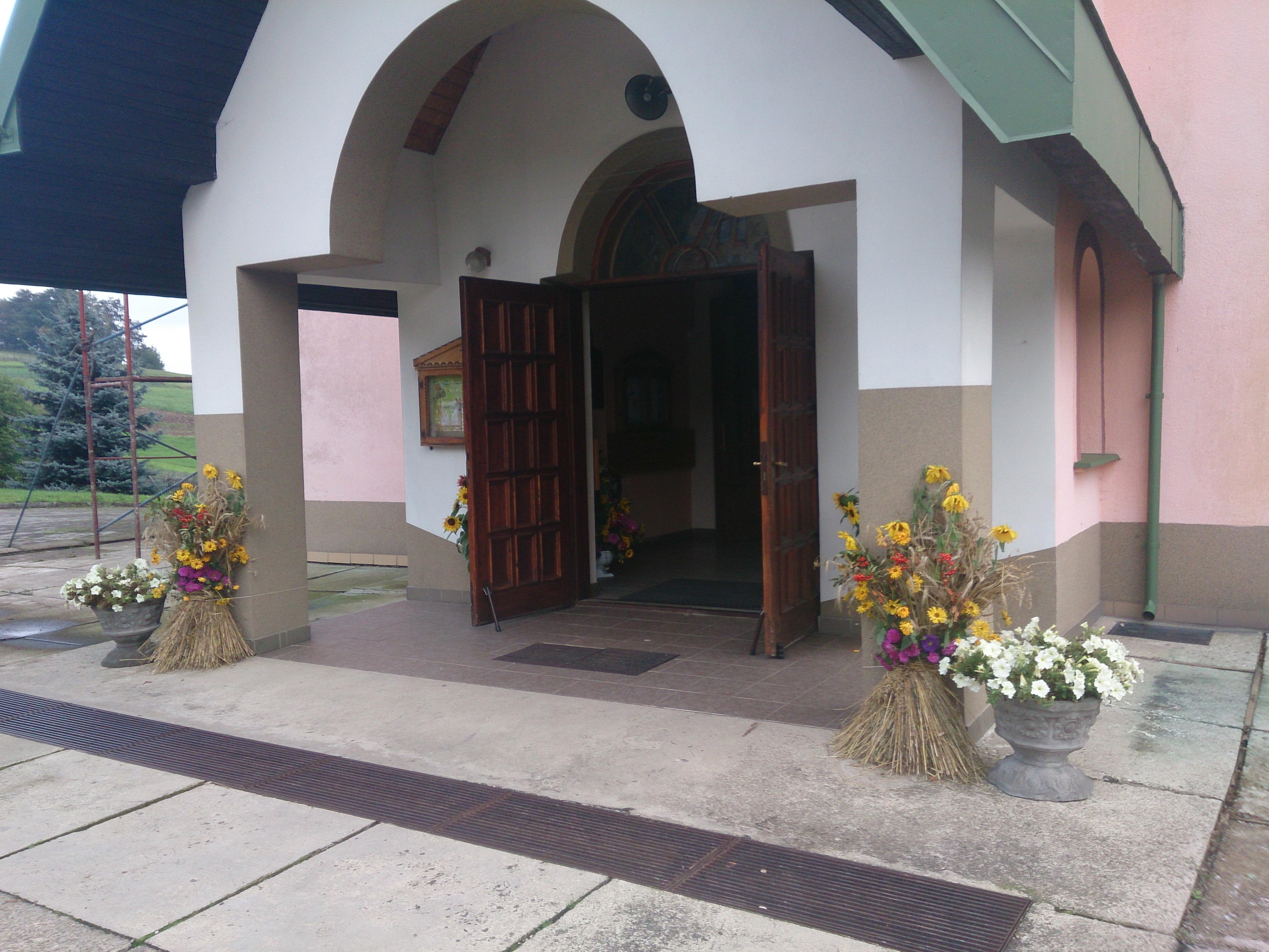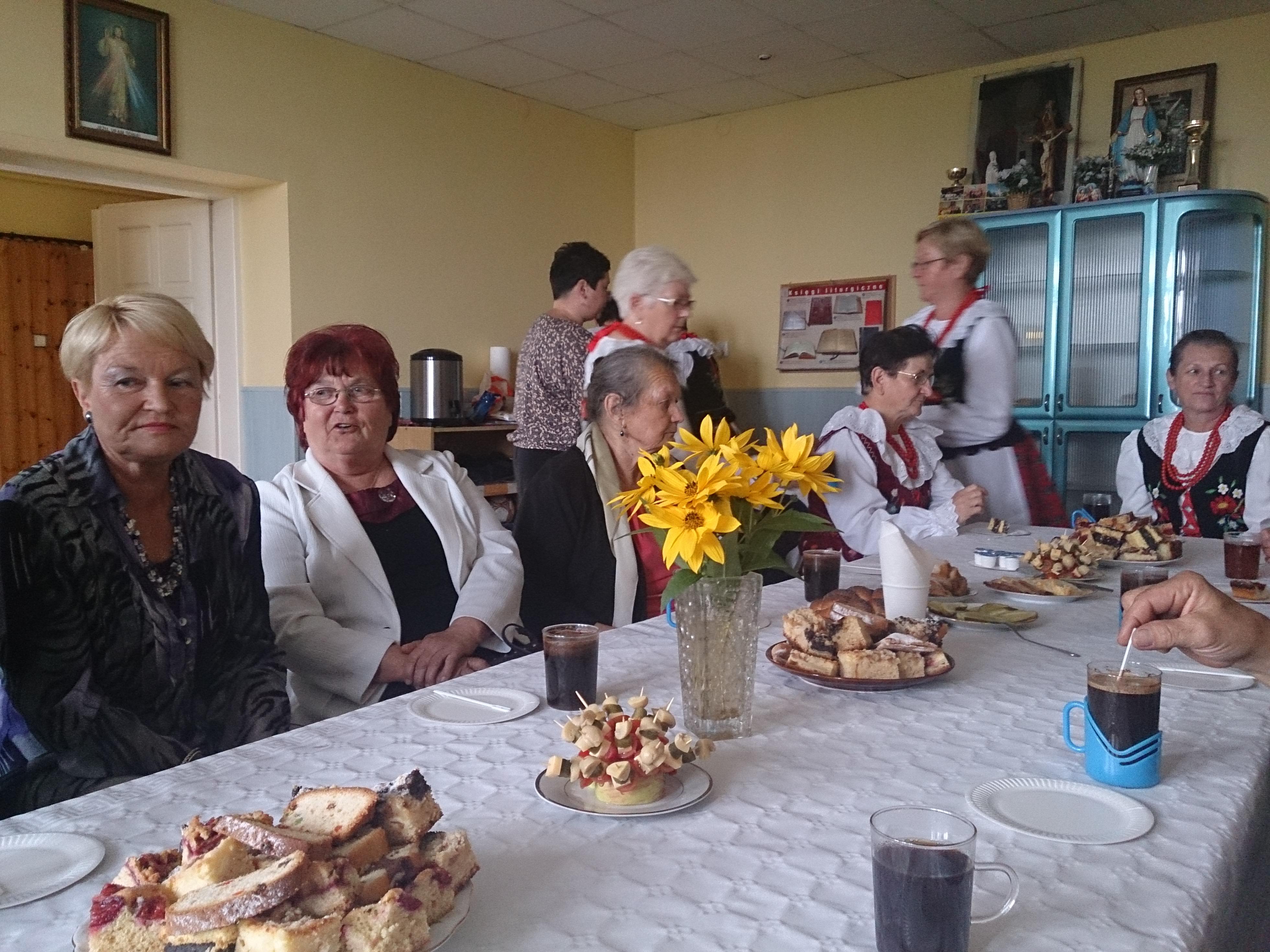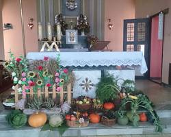 Przed ołtarzem złożono tegoroczne plony a panie z Koła Gospodyń Wiejskich częstowały przybyłych gości swojskim chlebem. Po uroczystości Gospodynie zaprosiły przybyłych gości na poczęstunek przez nie przygotowany.
