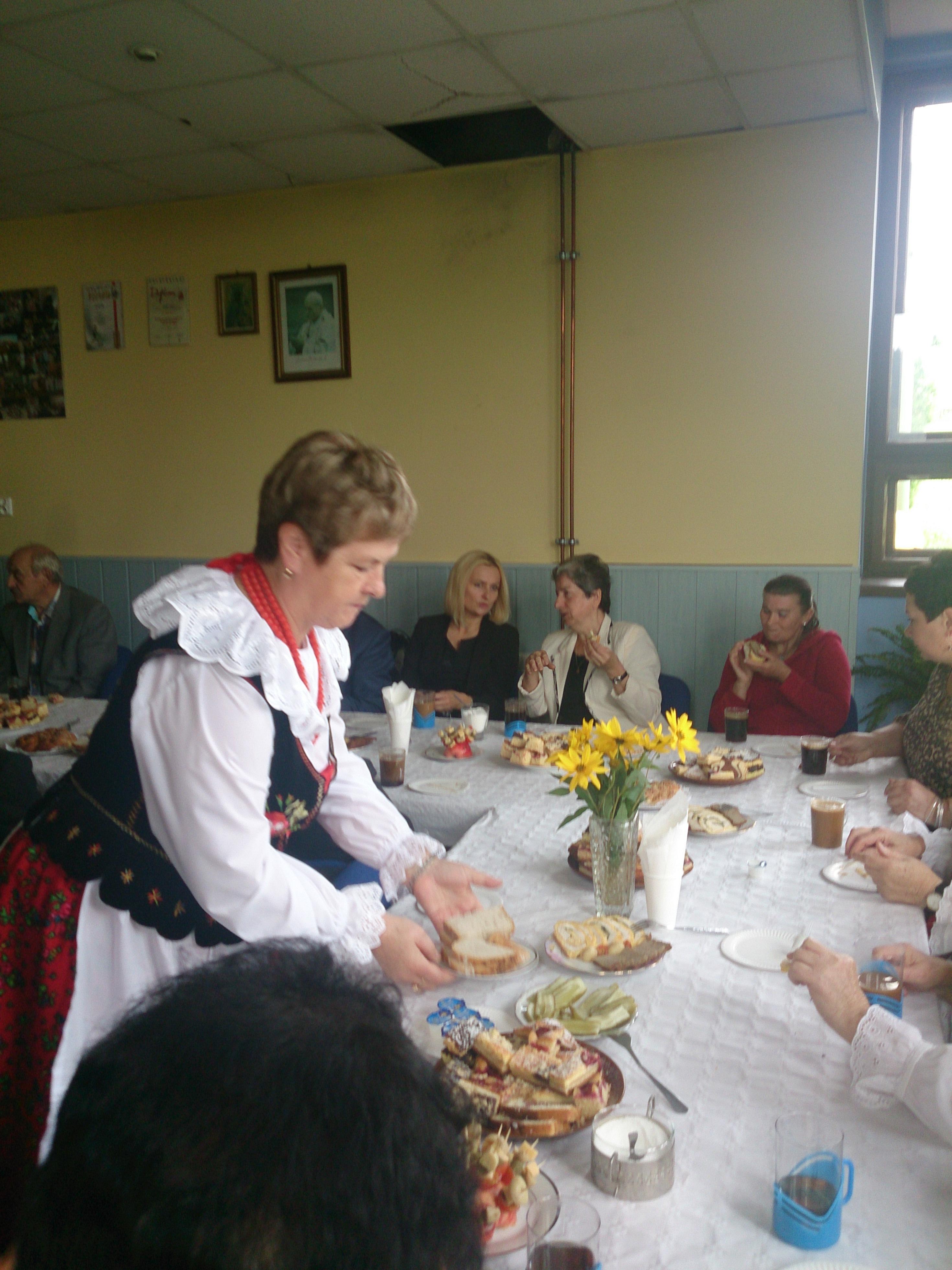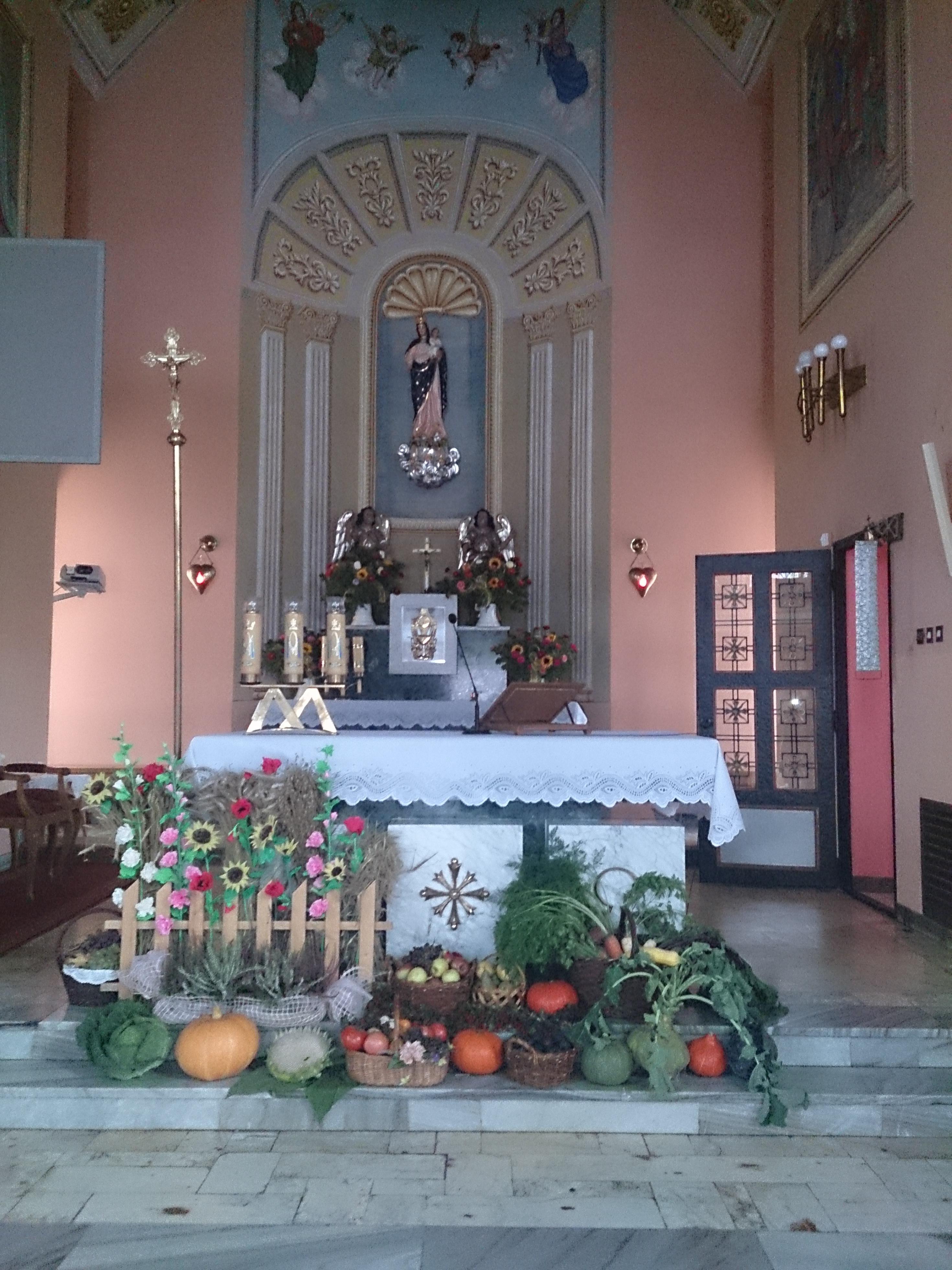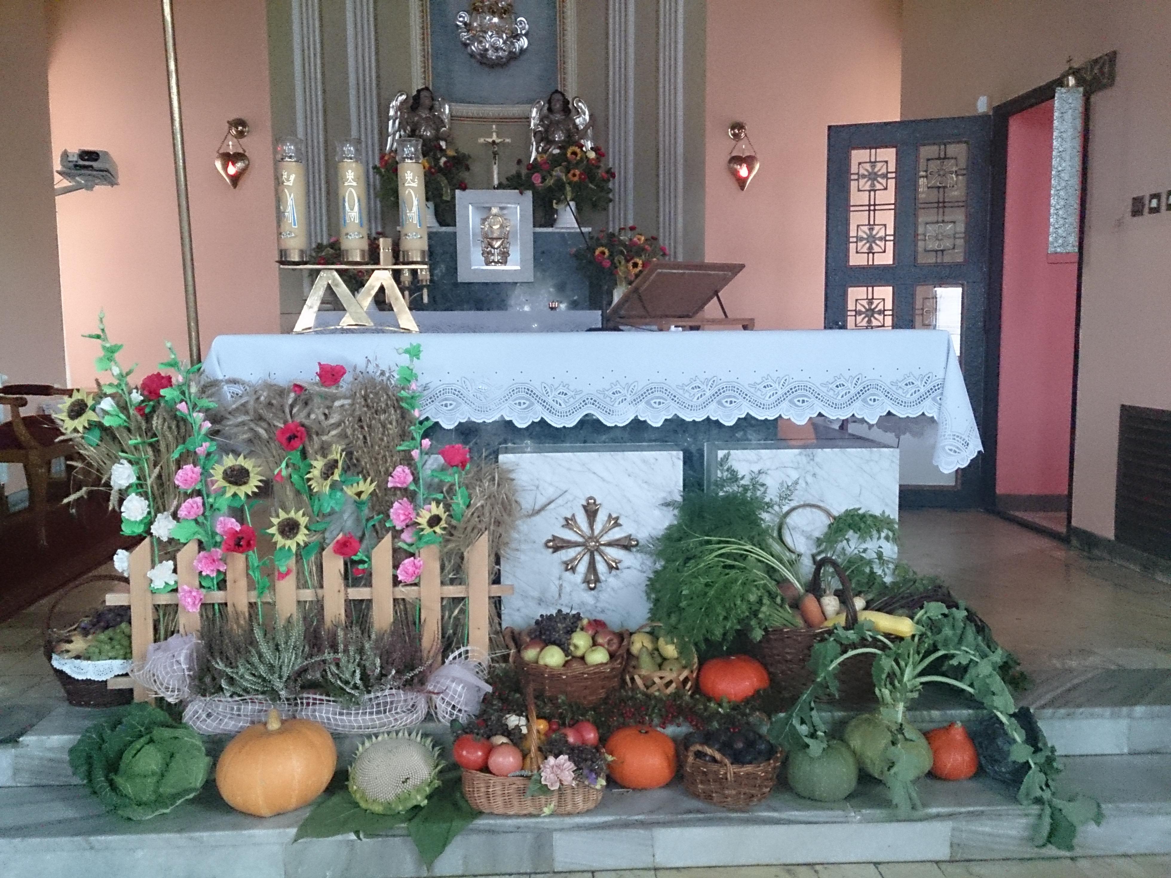 Przed ołtarzem złożono tegoroczne plony a panie z Koła Gospodyń Wiejskich częstowały przybyłych gości swojskim chlebem. Po uroczystości Gospodynie zaprosiły przybyłych gości na poczęstunek przez nie przygotowany.