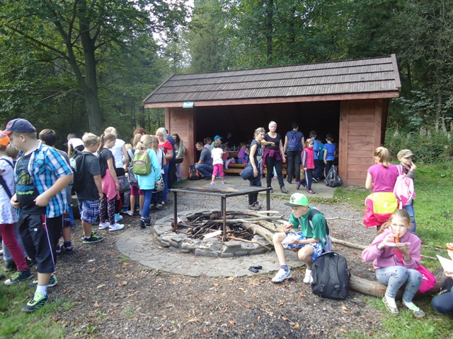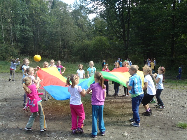 Po zapaleniu znicza, wszystkie klasy wraz z opiekunami, w blasku jesiennego słońca, przemierzyły trasę Słotwina-Zimnik, uczestnicząc w plenerowych zajęciach z historii, przyrody i wychowania fizycznego. Zmęczeni marszrutą i wygłodniali, z lubością rozlokowaliśmy się na zalanej słońcem polanie, delektując się smakiem przygotowanych dla nas nad ogniskiem frykasów, przy okazji kontemplując uroki pobliskiej fauny i flory.