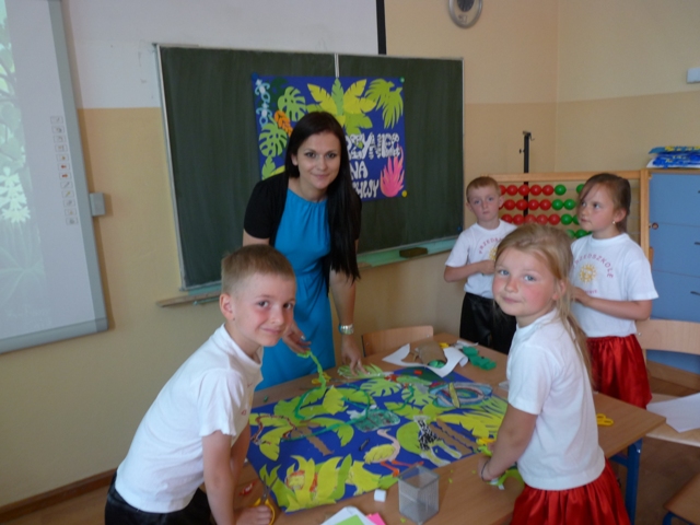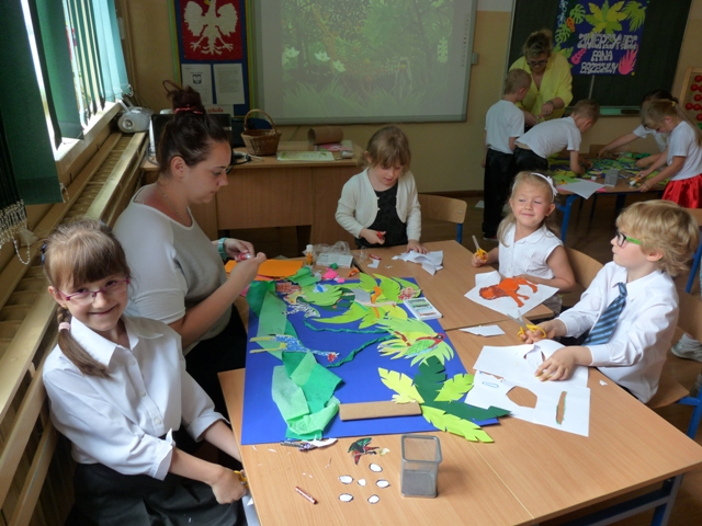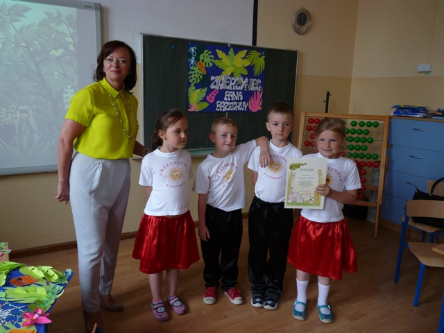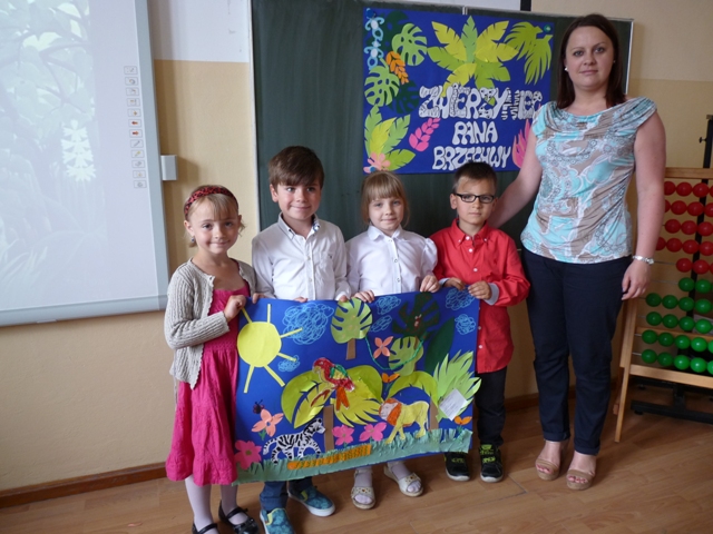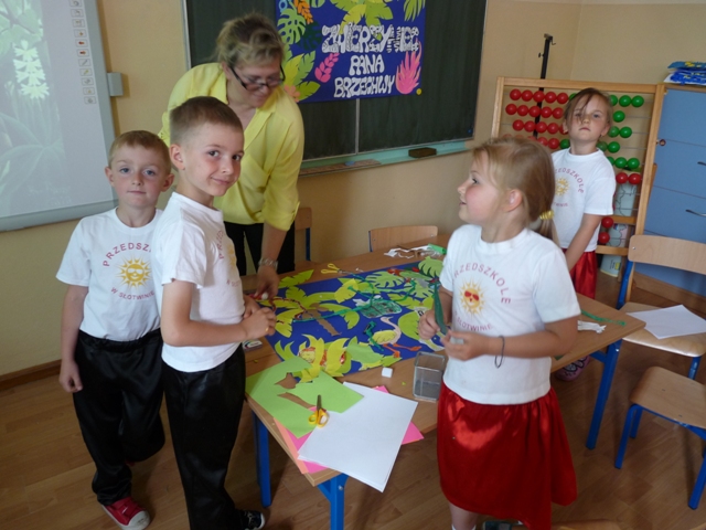 8 czerwca 2015 roku zaprosiliśmy do Zespołu Szkolno-Przedszkolnego w Słotwinie reprezentacje wszystkich „zerówek” terenu naszej gminy na warsztaty pt.: Zwierzyniec Pana Brzechwy, aby, bawiąc się, czegoś o świecie zwierząt się nauczyć. . Pani dyrektor Barbara Bysko zaprosiła wszystkich do wspólnej zabawy. Uczestników (czteroosobowe drużyny wraz z opiekunami) tanecznie przywitał cały zespół słotwińskich starszaków. W tematykę zajęć wprowadzili nas uczestnicy przedszkolnego koła czytelniczo-teatralnego, którzy z przejęciem recytowali wiersze Jana Brzechwy . Rymowanki, malowanki, zagadki i zabawy, a wszystko o zwierzętach, stanowiły część główną spotkania. Wspólnie wykonane prace plastyczne zdobią szkolny korytarz.