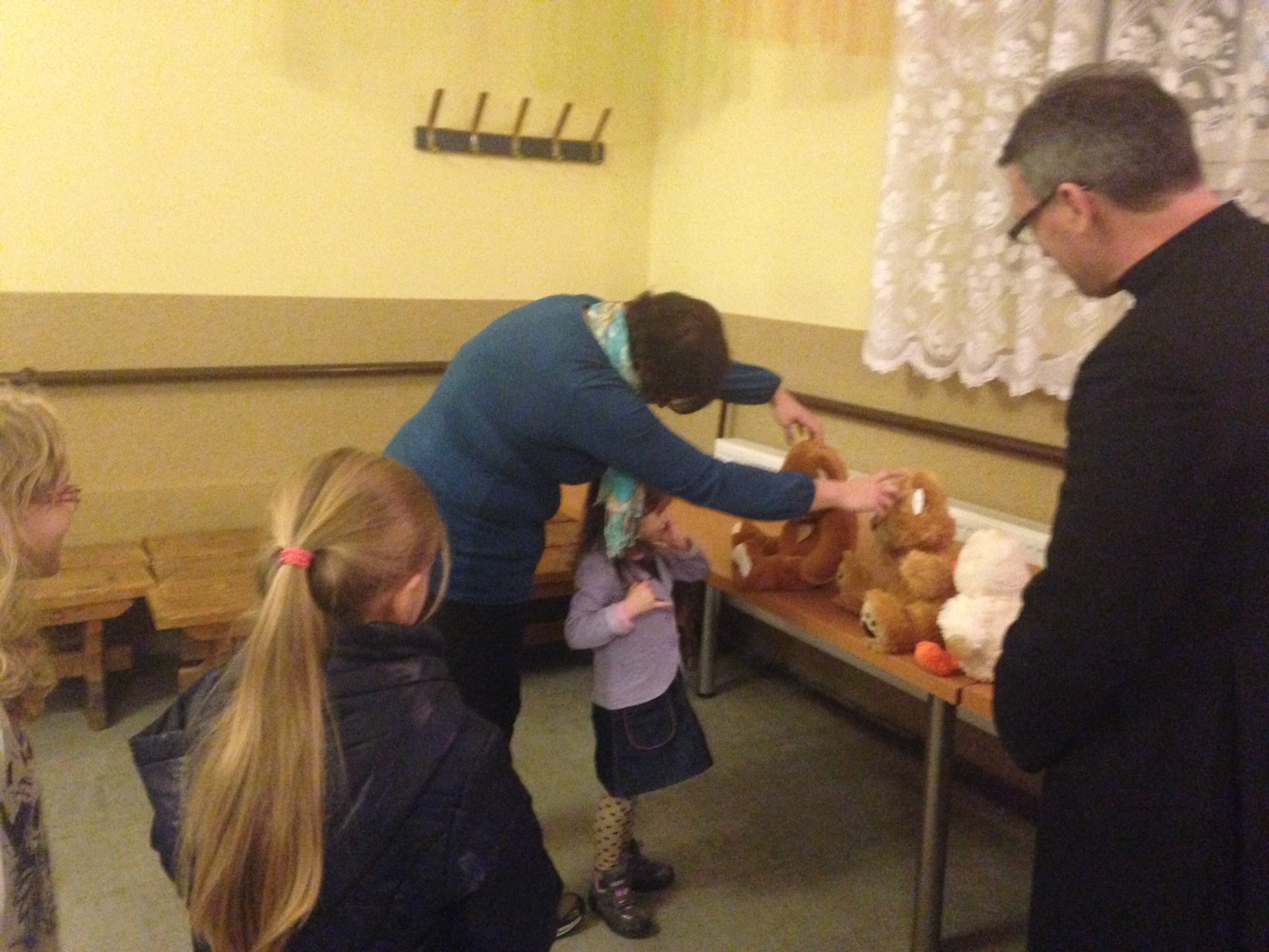 Ostatni dzień weekendu przeznaczony był na czytanie bajek dla dzieci. Badania dowodzą, że maluchy, którym czytano lepiej radzą sobie w szkole. To dzięki temu, że dziecko słuchając ćwiczy pamięć, koncentrację i rozwija wyobraźnię. Dzięki temu dziecko szybciej uczy się mówić i poszerza słownictwo. Bajki czytali dyrektorzy szkół, radni jak również swoją autorską twórczość zaprezentowała Pani Dominika Tomaszek - Semik, która, na co dzień pracuje w urzędzie gminy. W nagrodę dla małych, pilnych słuchaczy ks. Piotr Sadkiewicz z Leśnej, ufundował i przekazał pluszaki.