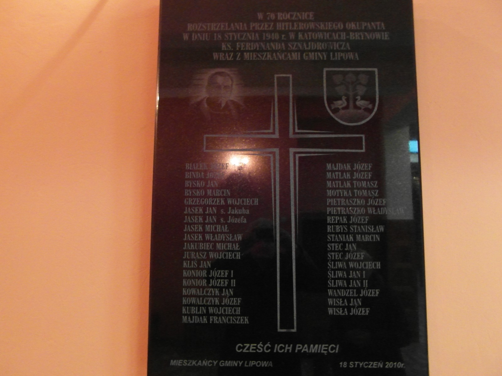 Wczoraj w kościele pod wezwaniem Podwyższenia Krzyża Świętego w Katowicach-Brynowie, uczczono pamięci zamordowanego ks. Ferdynanda Sznajdrowicza i 36 mieszkańców Gminy Lipowa. Uroczystości odbyły się 75 rocznicę rozstrzelania ich przez hitlerowskiego okupanta. W obchodach uczestniczył Wójt Gminy Lipowa Jan Góra, który złożył kwiaty pod tablicą pamiątkową, a następnie wziął udział w modlitwie za duszę pomordowanych. Pierwszego marca o godz. 9 w kościele Podwyższenia Krzyża Świętego w Katowicach - Brynowie zostanie odprawiona kolejna msza za duszę pomordowanych.