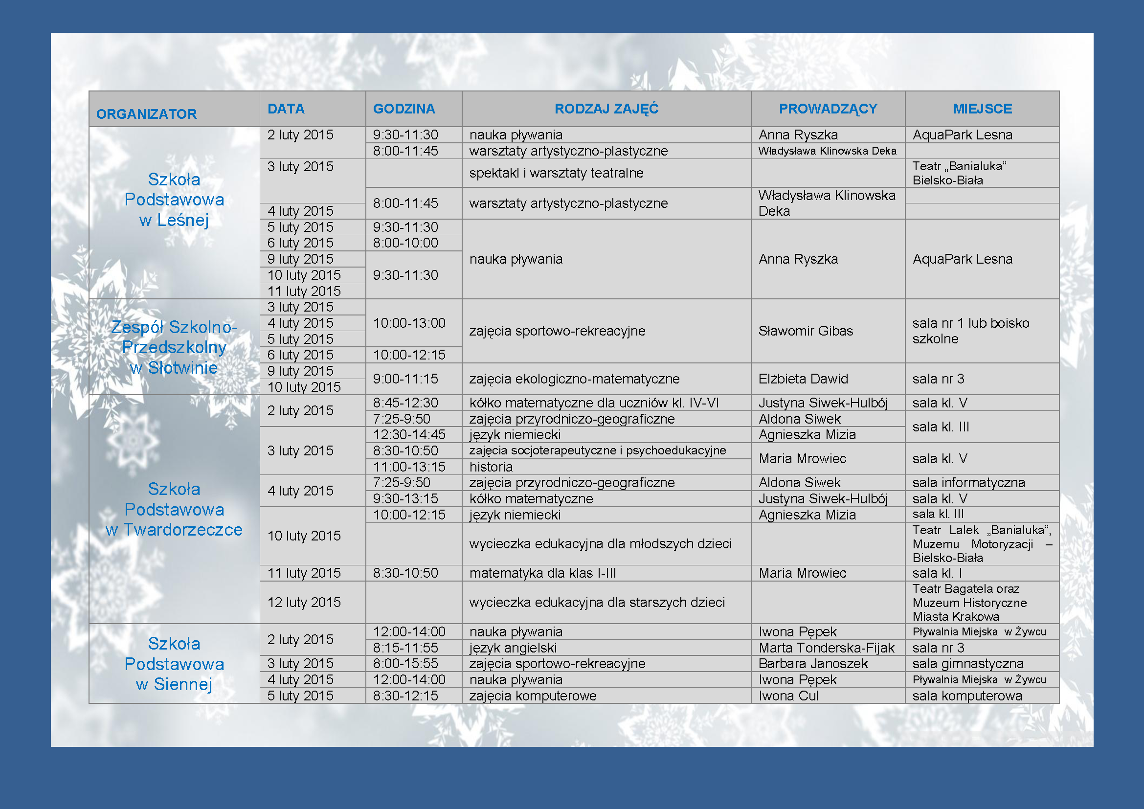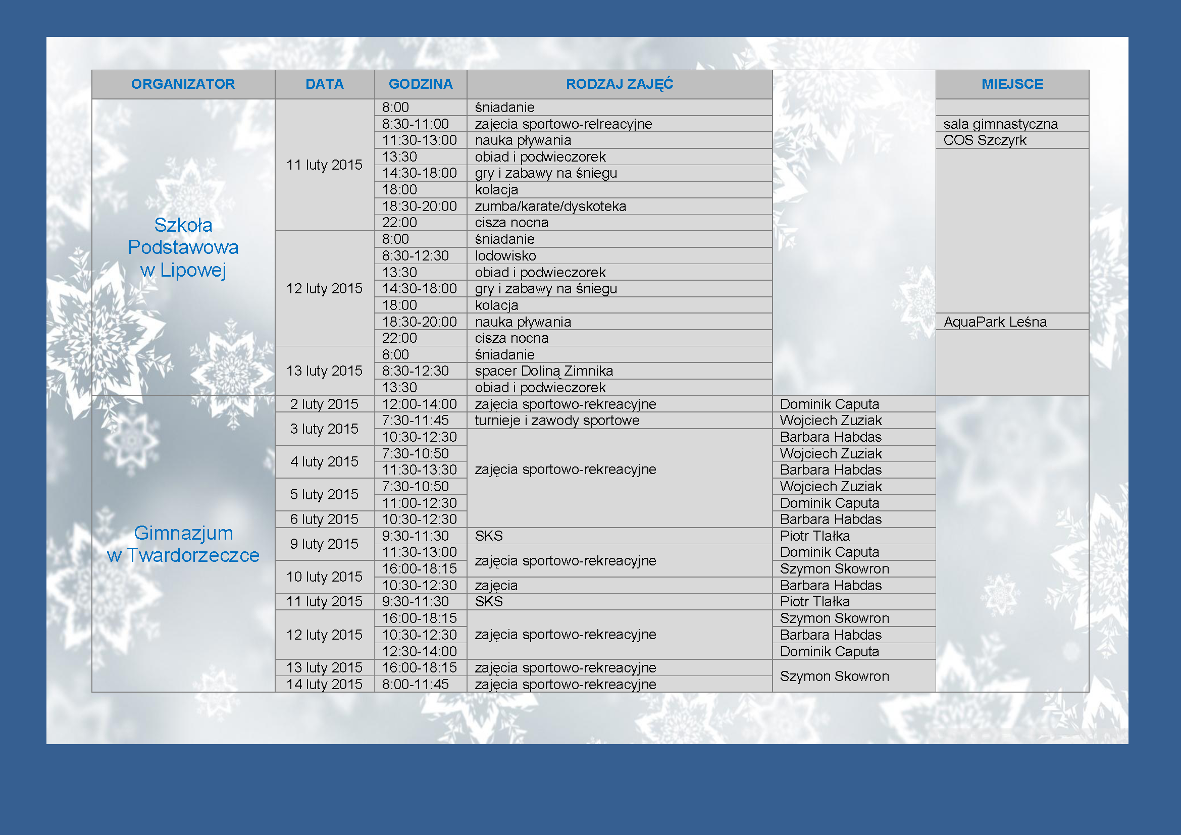 3 luty - godz. 8:00 - 13:30 - turniej z nagrodami dla uczniów i uczennic gimnazjum - sala sportowa przy gimnazjum w Twardorzeczce.