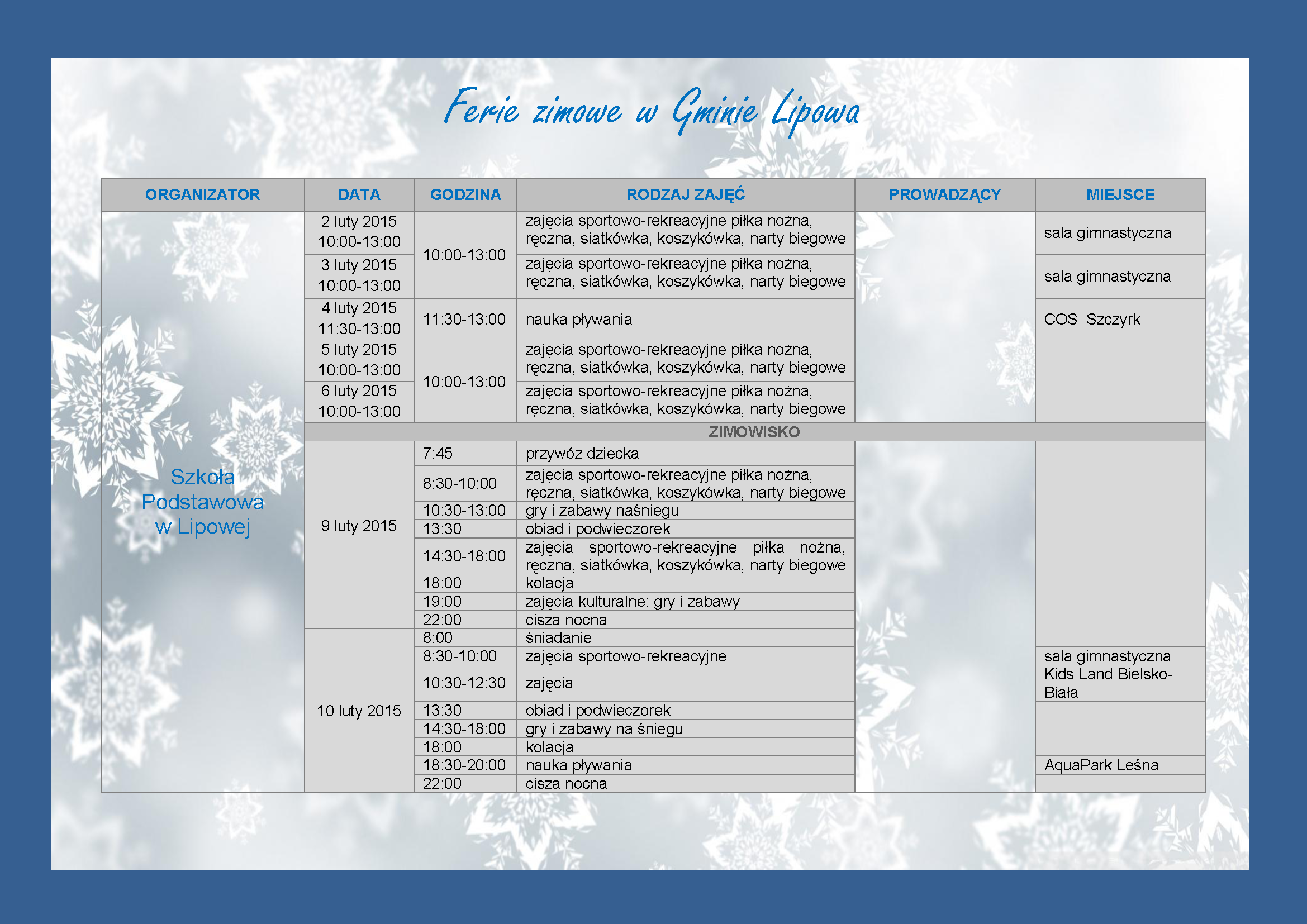 Ferie pod patronatem wójta gminy Lipowa Jana Góry.
