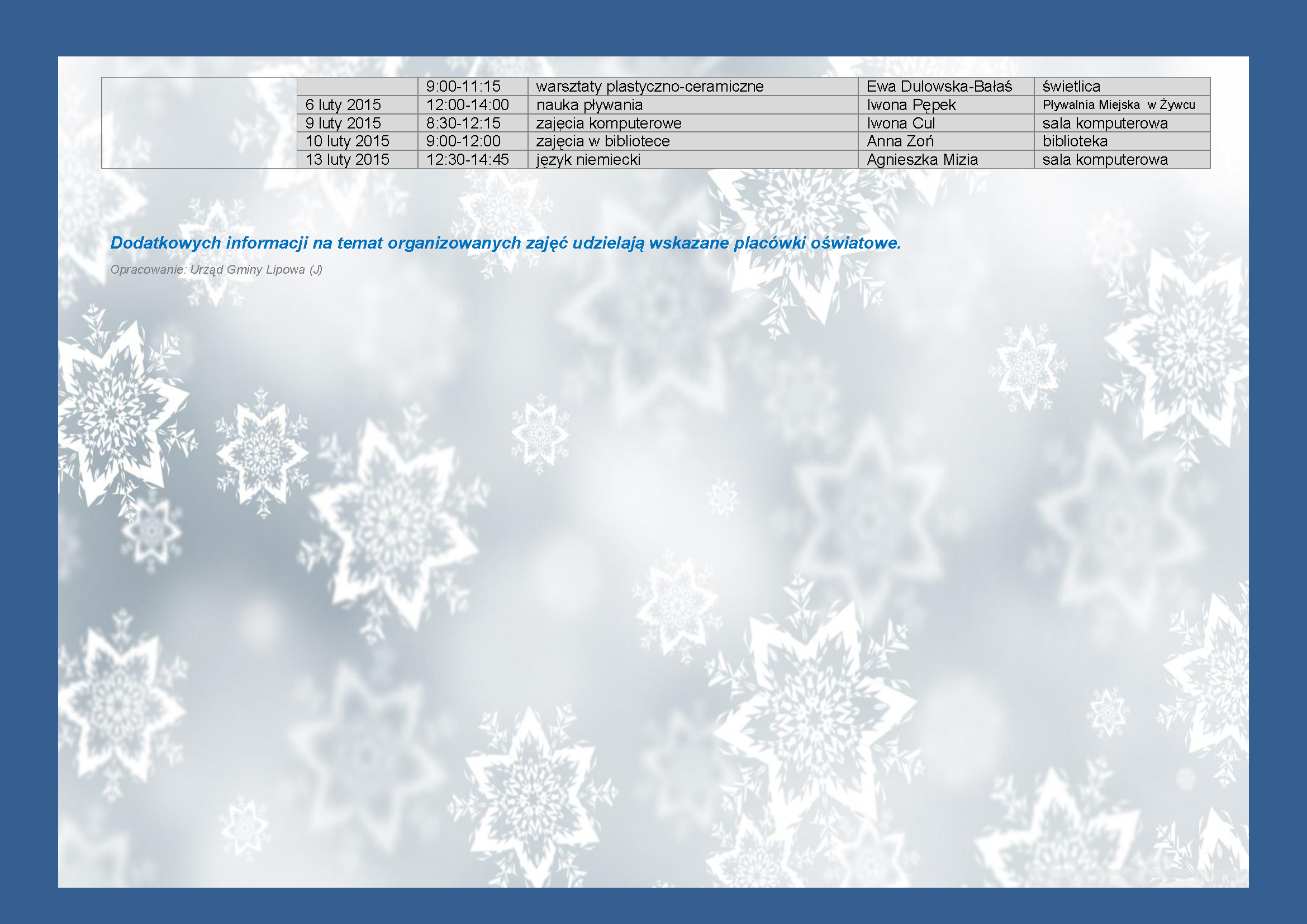 12 luty - godz. 15:30 - 17:00 - zajęcia poprowadzi Pani Katarzyna Skrzypek - sala KGW Leśna.