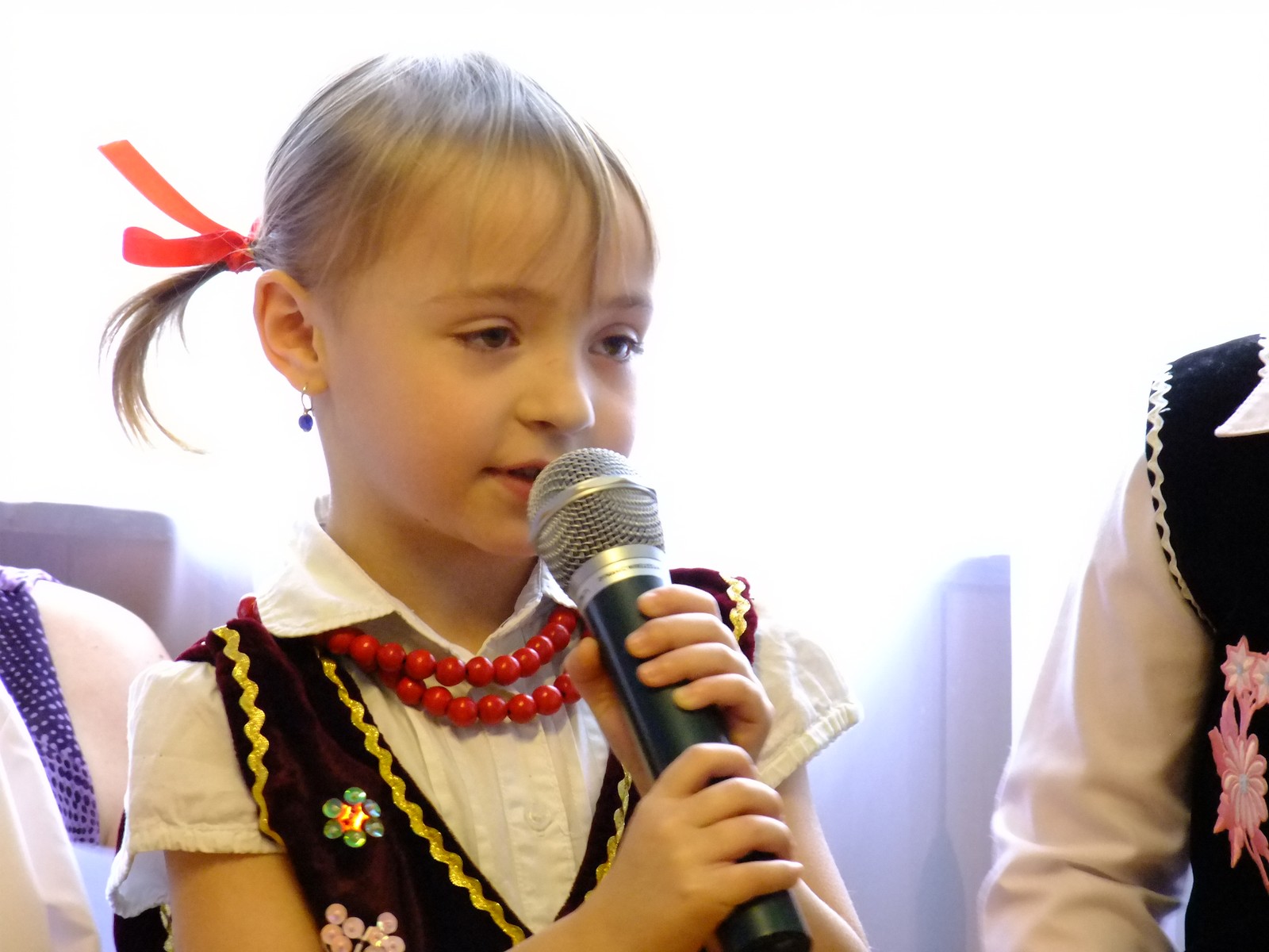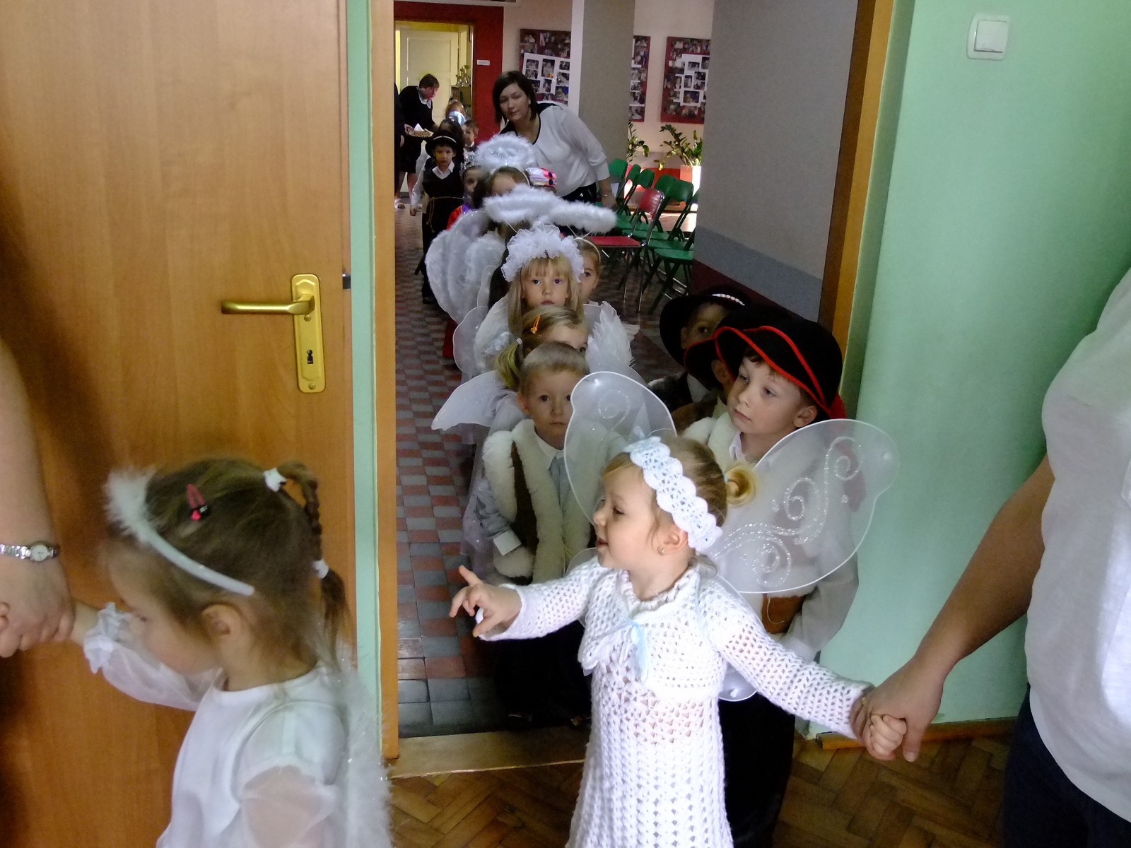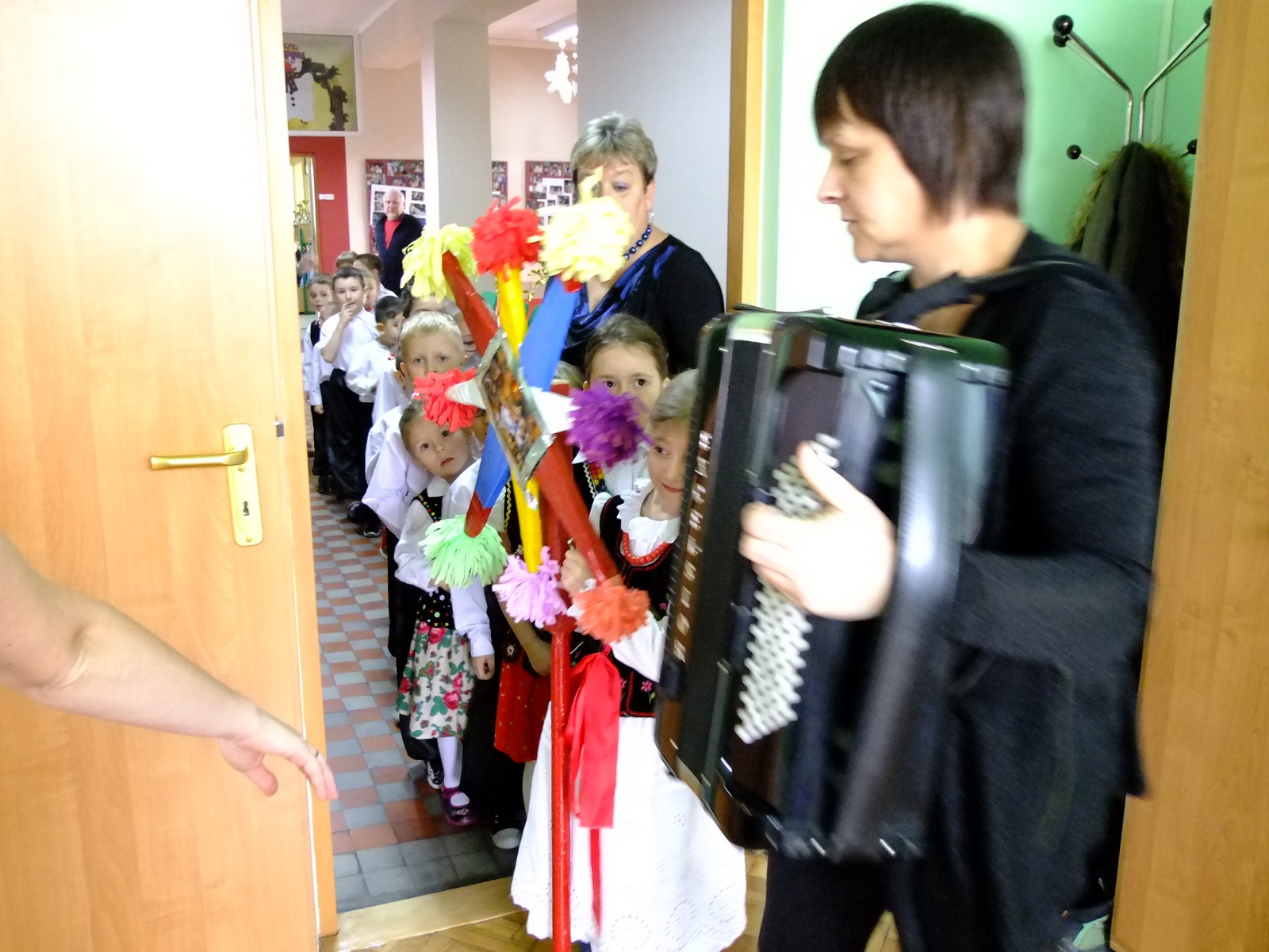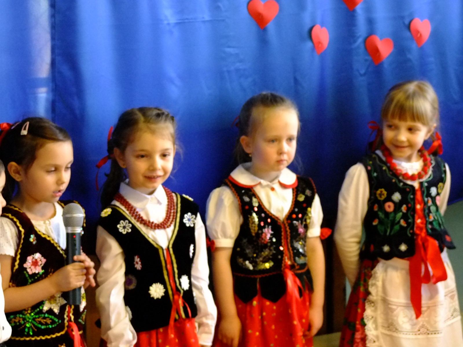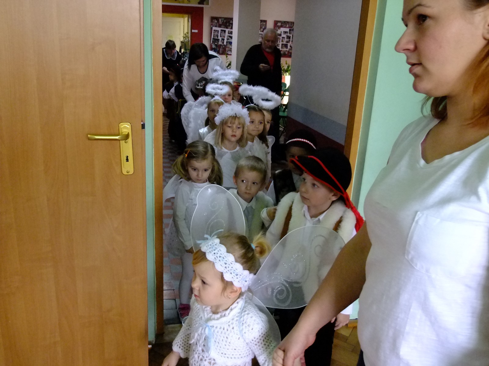 Grupa starsza przedstawiła program pt. "Kolędowanie", w którym złożyli po góralsku życzenia oraz śpiewali góralskie przyśpiewki przy akompaniamencie akordeonu Pani Katarzyny Jopek, która prowadzi w przedszkolu rytmikę. Grupa młodsza przedstawiła Jasełka, wspólnie z zaproszonymi gośćmi śpiewaliśmy kolędy. Na zakończenie grupa starsza zaśpiewała piosenkę po angielsku.