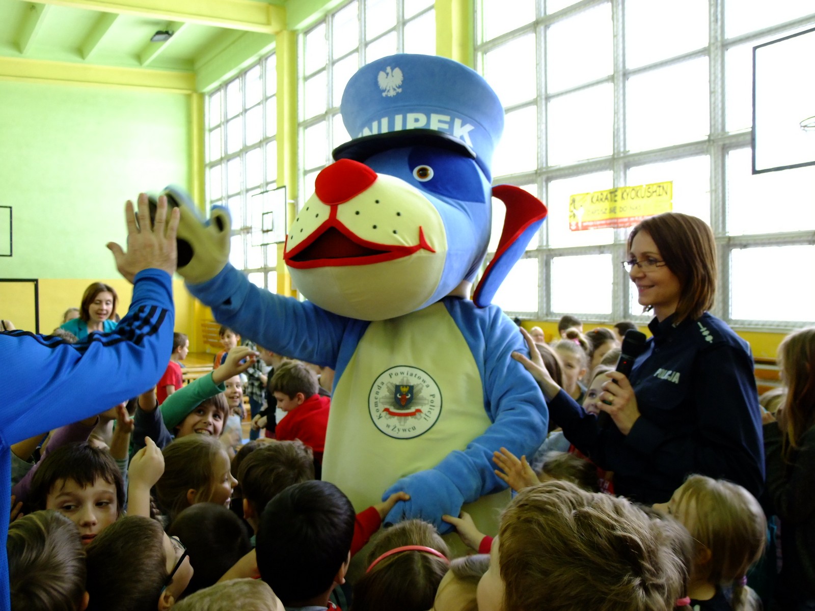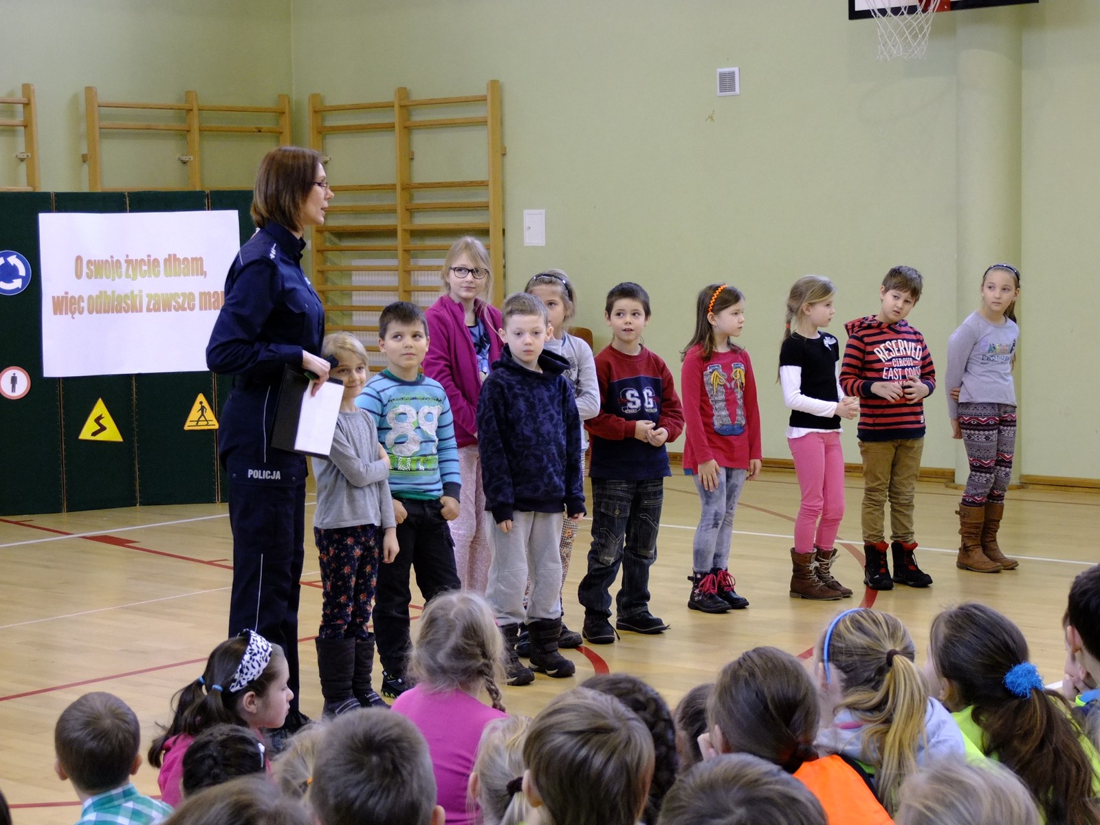 W całej Polsce trwa już policyjna akcja "Bezpieczne ferie" i właśnie w ramach tej akcji w gminie Lipowa dobyły się pogadanki o bezpieczeństwie dla najmłodszych. Konkursy, przedstawienia przygotowane przez uczniów, zabawy i filmiki propagujące stosowanie się do zasad ruchu drogowego, tego nie zabrakło dziś w szkole podstawowej w Leśnej i Lipowej. Właśnie tam zjechały dzieci klas 1-3 z całej gminy. Spotkanie poprowadziła aspirant Mirosława Piątek z komendy powiatowej w Żywcu. Jedną z największych atrakcji, a zarazem gościem specjalnym spotkania był "Sznupek", czyli maskotka śląskiej policji.