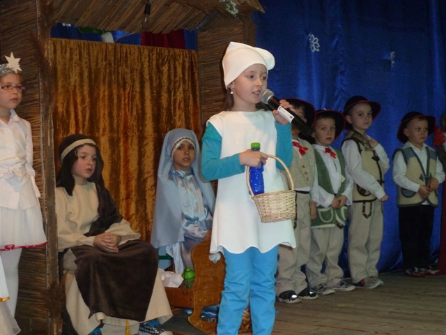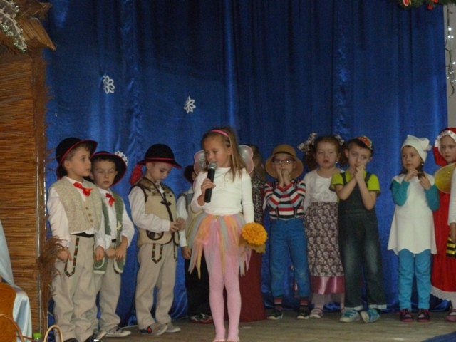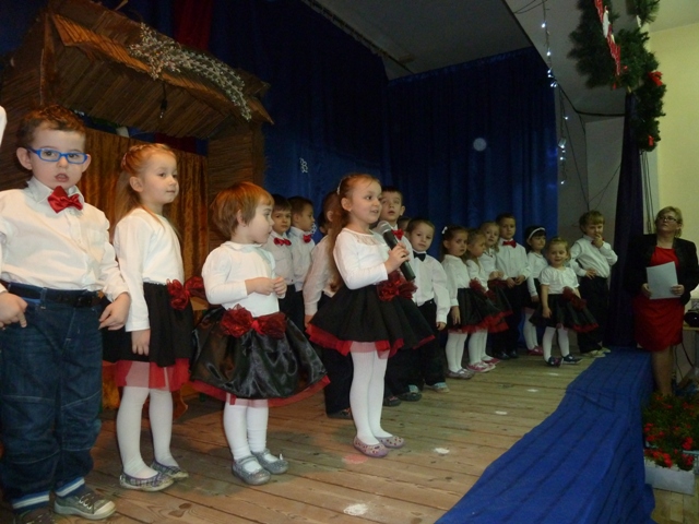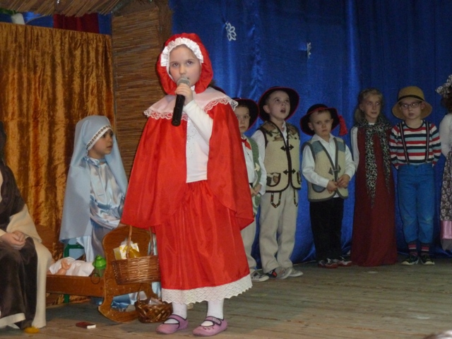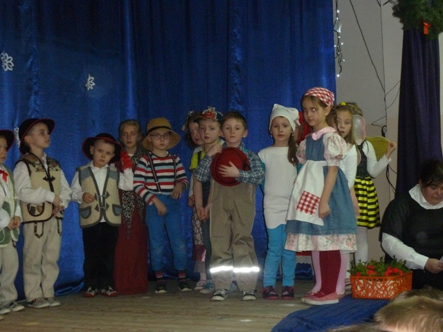 W kolejnej odsłonie wystąpiły starszaki i przedstawiły gościom ,,Bajkowe jasełka”. Dzieci wcieliły się w rolę: Józefa, Maryi, Pasterzy, Aniołów, Jasia i Małgosi, Dziewczynki z zapałkami, Pinokio i inne postacie z bajek. Wspaniałe stroje przygotowane przez rodziców oraz bardzo dobrze zagrane role zachwyciły wszystkich.