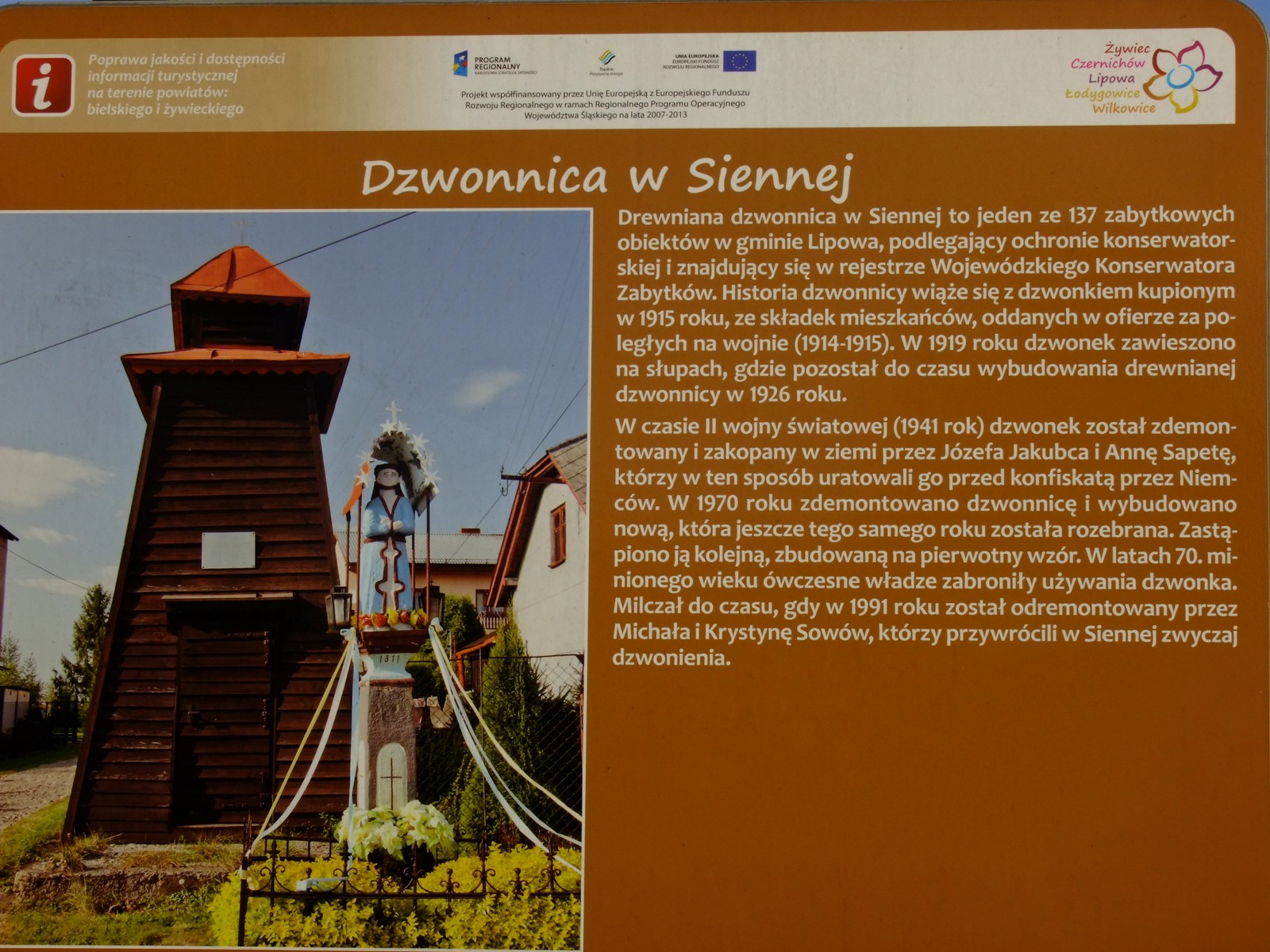 Zabytkowe kapliczki, dzwonnice, kościoły to stałe, charakterystyczne elementy krajobrazu na Żywiecczyźnie. Wiele z nich skrywa bardzo ciekawe historie, o których mało się mówi. Jednym z takich obiektów jest, właśnie wyremontowana dzwonnica w Siennej.