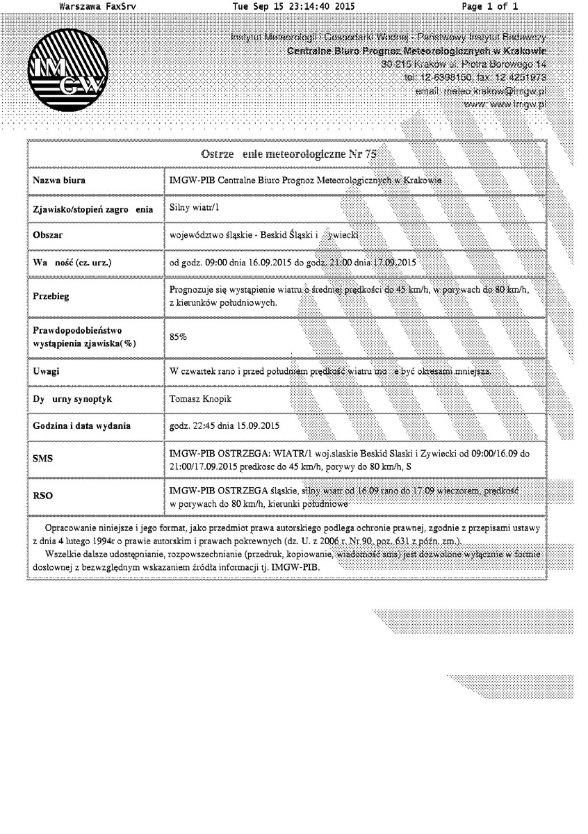 Ostrzeżenie meteorologiczne - silny wiatr