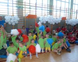 ,,0” z SP Lipowa. Każde z przedszkoli wystąpiło w pięknych, barwnych strojach sportowych. Słotwina przywitała wszystkich uczestników programem