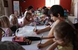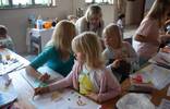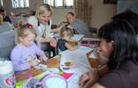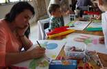 Spotkanie było okazją do wspólnego spędzenia wolnego czasu z rówieśnikami oraz z Mamą i z Tatą. Przedszkolaki i ich Rodzice wykonywali, różnymi technikami plastycznymi, prace na temat „Moja ulubiona zabawa”. Zabawy dawniej i dziś różnią się od siebie. Na rysunkach dzieci nie zobaczymy już skakania w gumę, zabawy w chowanego czy gry w klasy. Ważne jednak jest to, że przedstawione przez Przedszkolaki zabawy odbywają się na świeżym powietrzu!