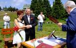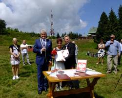 Wójt Gminy Lipowa Jan Góra po raz kolejny udzielił ślubu na Skrzycznem. Pani Monika i Pan Mariusz pochodzą z Łodzi, uwielbiają chodzić po górach. W pięknej, górskiej scenerii, para postanowiła się zaręczyć (miało to miejsce w naszej gminie na Malinowskiej Skale (1152 m n.p.m), a następnie w sobotę, powiedzieć sobie „tak” na polanie w pobliżu schroniska na najwyższym szczycie Beskidu Śląskiego (1257 m n.p.m.).