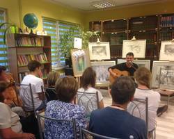 „Skrawek nieba. Poradnik nieporadny”. Pan Jacek przyjechał do Lipowej z gitarą, dzięki czemu zainteresowani mogli także posłuchać wspaniałych