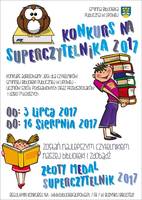 Zapraszamy do udziału w konkursie na Super Czytelnika wakacji 2017r . Konkurs adresowany jest dla czytelników Gminnej Biblioteki Publicznej w Lipowej - uczniów szkół podstawowych oraz przedszkolaków i dzieci młodszych. Zainteresowane osoby muszą najpierw odebrać w bibliotece w Lipowej kartę zgłoszeniową, a następnie zbierać specjalne naklejki(1 naklejka = 1 wizyta w bibliotece), na karcie wpisywana będzie również ilość wypożyczonych książek (limit jednorazowego wypożyczenia to 7 książek). Konkurs trwa do 16 sierpnia. Szczegóły w regulaminie.