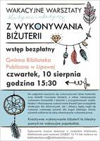 W czwartek, 10 sierpnia o godz. 15:30 zapraszamy dzieci oraz młodzież na bezpłatne, wakacyjne warsztaty wykonywania biżuterii od podstaw. Na zajęciach nauczymy się wykorzystywać różne materiały oraz techniki tworzenia biżuterii, a także własnoręcznie wykonamy bransoletki i kolczyki z przygotowanych ozdób. Nauka i własnoręczne wykonywanie biżuterii jest szczególnie atrakcyjne dla dziewczynek, ale i chłopcy będą mogli się wykazać wykonując prezent dla kogoś bliskiego. Każdy uczestnik zabierze ze sobą własnoręcznie wykonane prace. Kreatywne wykonywanie biżuterii to idealny pomysł na wakacyjne popołudnie. Warsztaty odbywają się pod patronatem Wójta Jana Góry. Zapisy w siedzibie Gminnej Biblioteki Publicznej w Lipowej, pod numerem (33)867 16 74 lub mailowo na bibliotekalipowa@bibliotekalipowa.pl