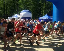 kobiety do lat 35, kobiety powyżej lat 35, mężczyźni do lat 35, mężczyźni powyżej lat 35 oraz kategoria drużynowa. Na mecie wszyscy biegacze