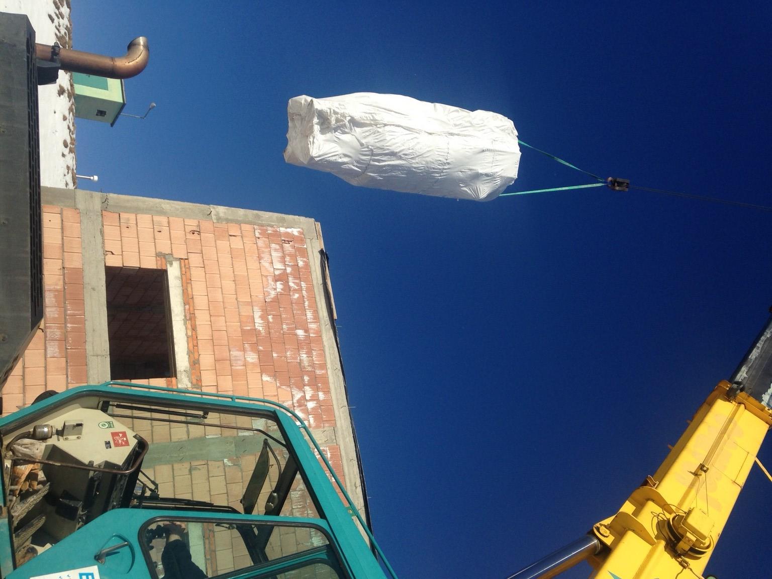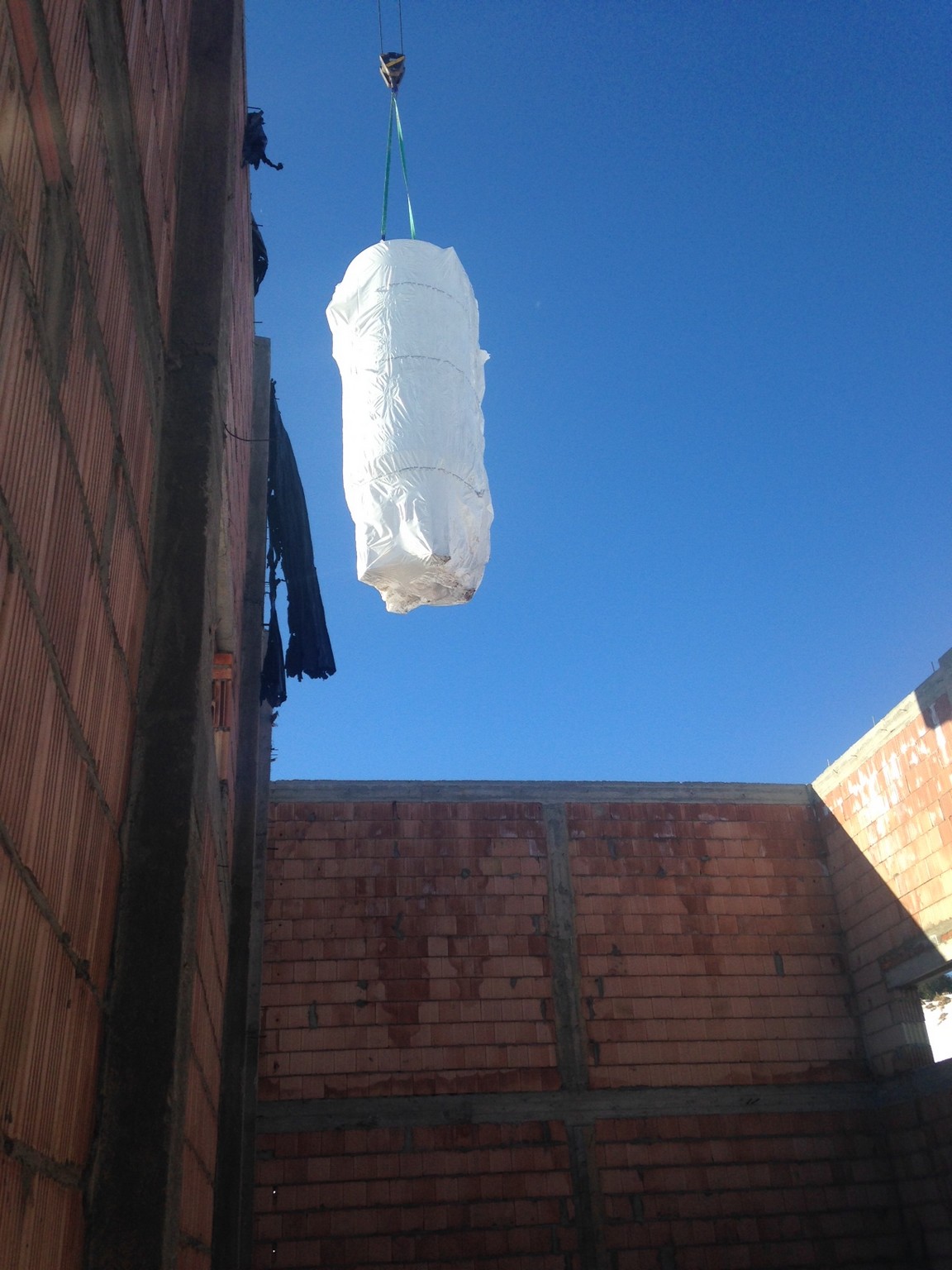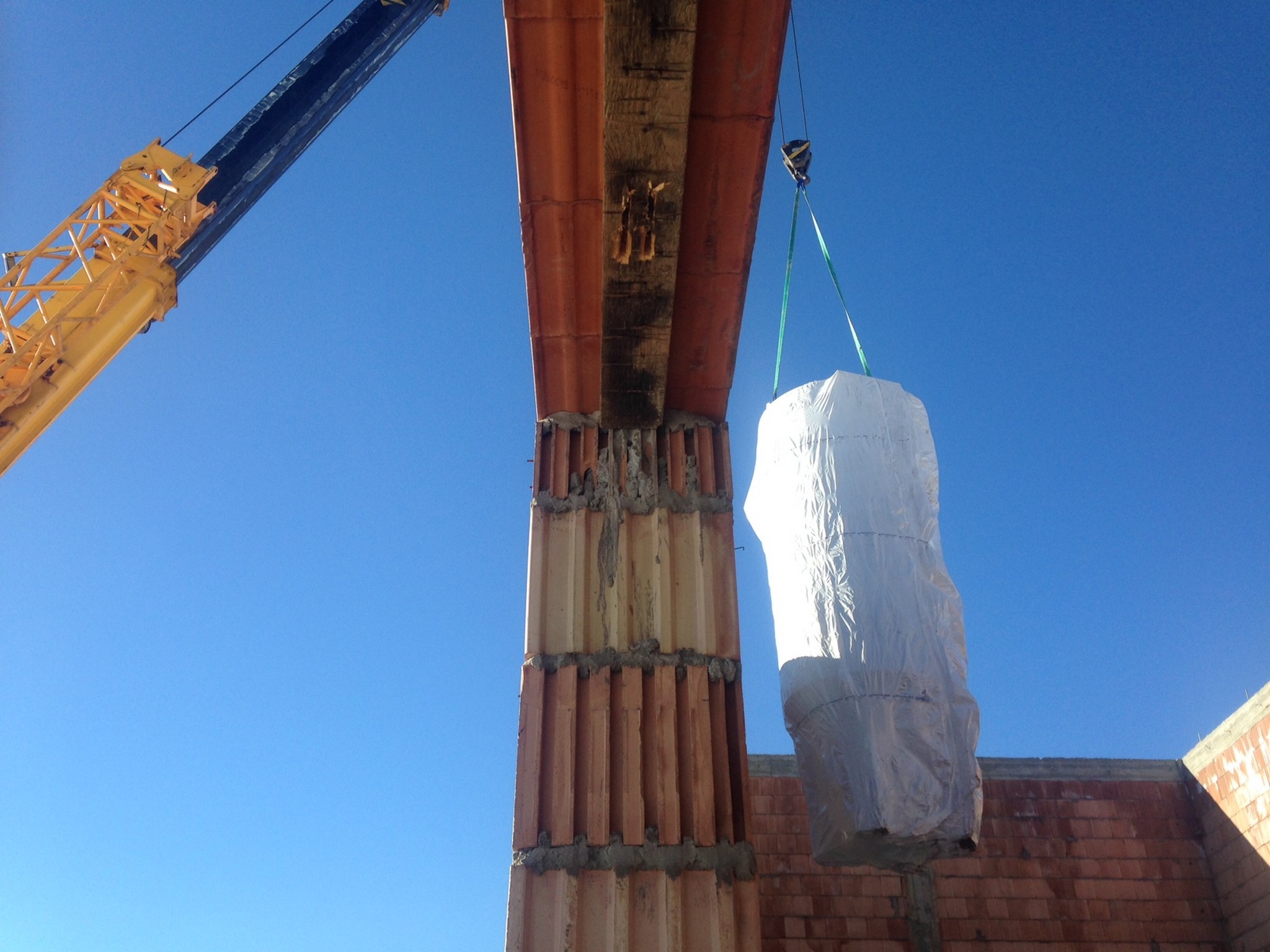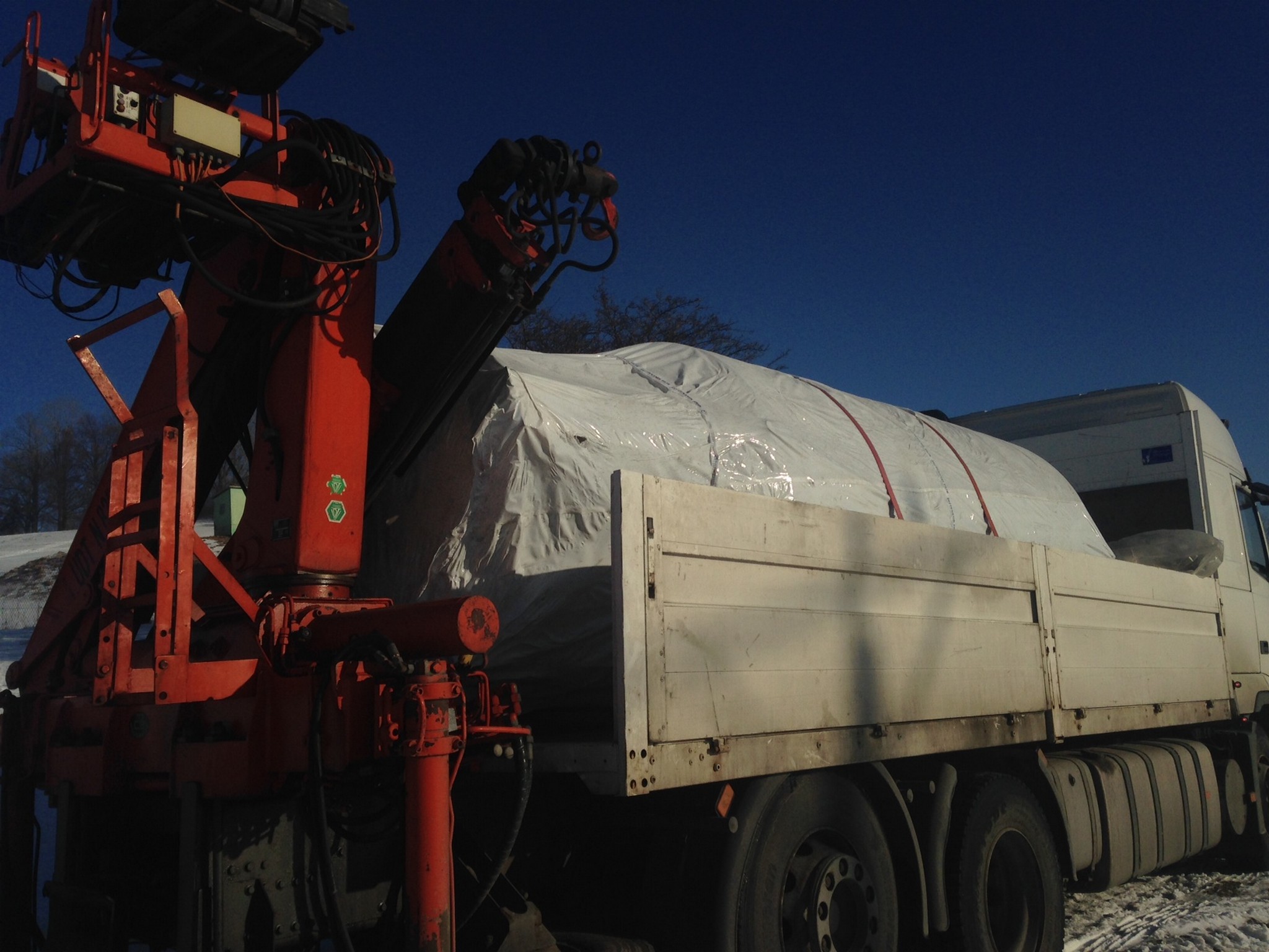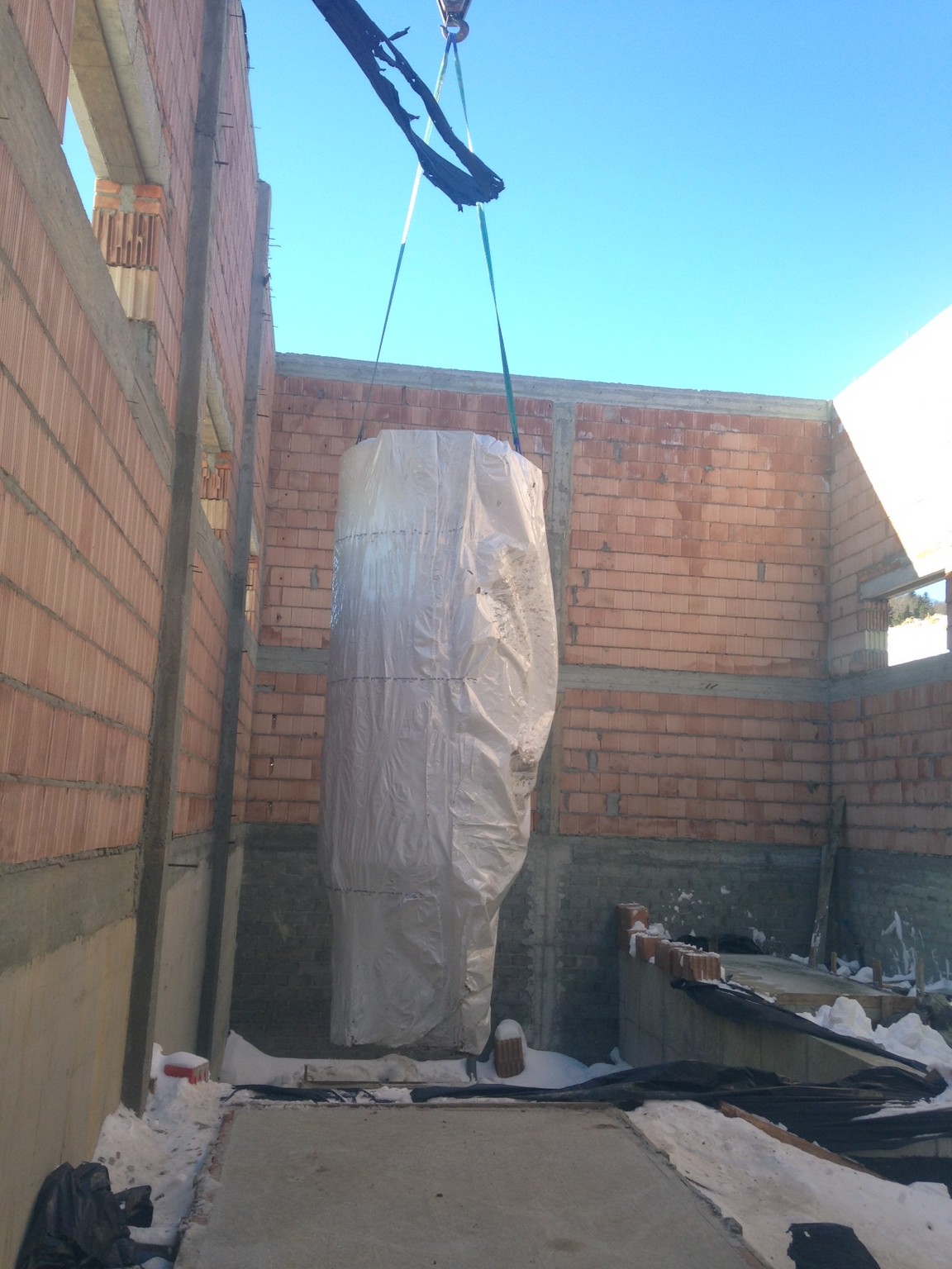 Rozpoczął się kolejny etap budowy naszego własnego ujęcia wody. Do wybudowanej wcześniej stacji uzdatniania wody przywiezione zostały blisko 2 tonowe filtry. Specjalny dźwig przez dach wkładał te elementy aparatury. W kolejnych dniach przywożone i montowane będą następne urządzenia. Ten etap zakończy budowa dachu.