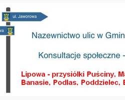 w związku z planowanym wprowadzeniem nazewnictwa ulic na terenie Gminy Lipowa, w celu poznania Państwa opinii o proponowanych nazwach ulic w