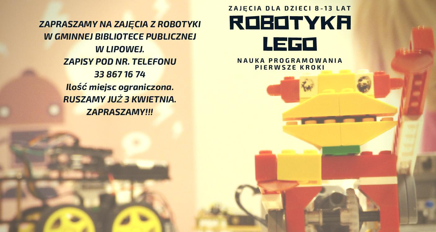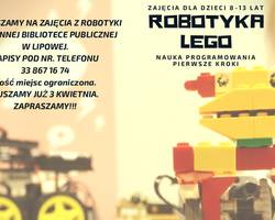 Już od kwietnia ruszamy z nowym, bezpłatnym cyklem zajęć! 3 kwietnia w naszej Gminnej Bibliotece Publicznej w Lipowej odbędą się pierwsze zajęcia „Robotyka Lego – nauka programowania, pierwsze kroki”, które poprowadzi Stowarzyszenie dla rozwoju DROGOWSKAZ z Łodygowic. Zajęcia dedykowane są dla dzieci w wieku od 8 do 13 lat. Przyjmujemy zapisy do 2 grup – na godzinę 15:00 oraz na godzinę 16:35. Spotkania będą odbywały się raz w tygodniu (cykl zajęć składa się z 8 spotkań). Na zajęcia obowiązują zapisy w siedzibie biblioteki, pod nr (33) 867 16 74 lub mailowo na bibliotekalipowa@bibliotekalipowa.pl. Wstęp na warsztaty jest bezpłatny. Ilość miejsc ograniczona – decyduje kolejność zgłoszeń.