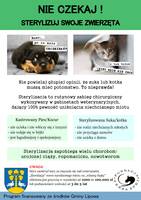 Rusza akcja dopłat do sterylizacji psów i kotów. Dopłatę w wysokości 50% kosztu zabiegu można uzyskać zgłaszając się telefonicznie i wypełniając wniosek na sterylizację zwierzęcia. Skierowania na zabieg wydaje przedstawiciel Fundacji Terra Spei. Kontakt tel. 601 595 407. Program finansowany ze środków Gminy Lipowa.