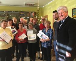 złożyli im przedstawiciele Fundacji Partycypacji Społecznej, Wójt Gminy Lipowa Jan Góra, dyrektor Biblioteki w Lipowej Sylwia Pietyra.