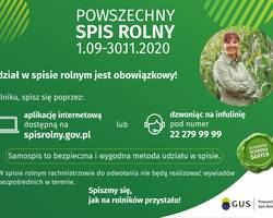 Uprzejmie informujemy, że zgodnie z decyzją Zastępcy Generalnego Komisarza Spisowego od dnia 10 października 2020 r. istnieje możliwość realizacji Powszechnego Spisu Rolnego przez rachmistrzów w formie wywiadów bezpośrednich z użytkownikami gospodarstw rolnych.